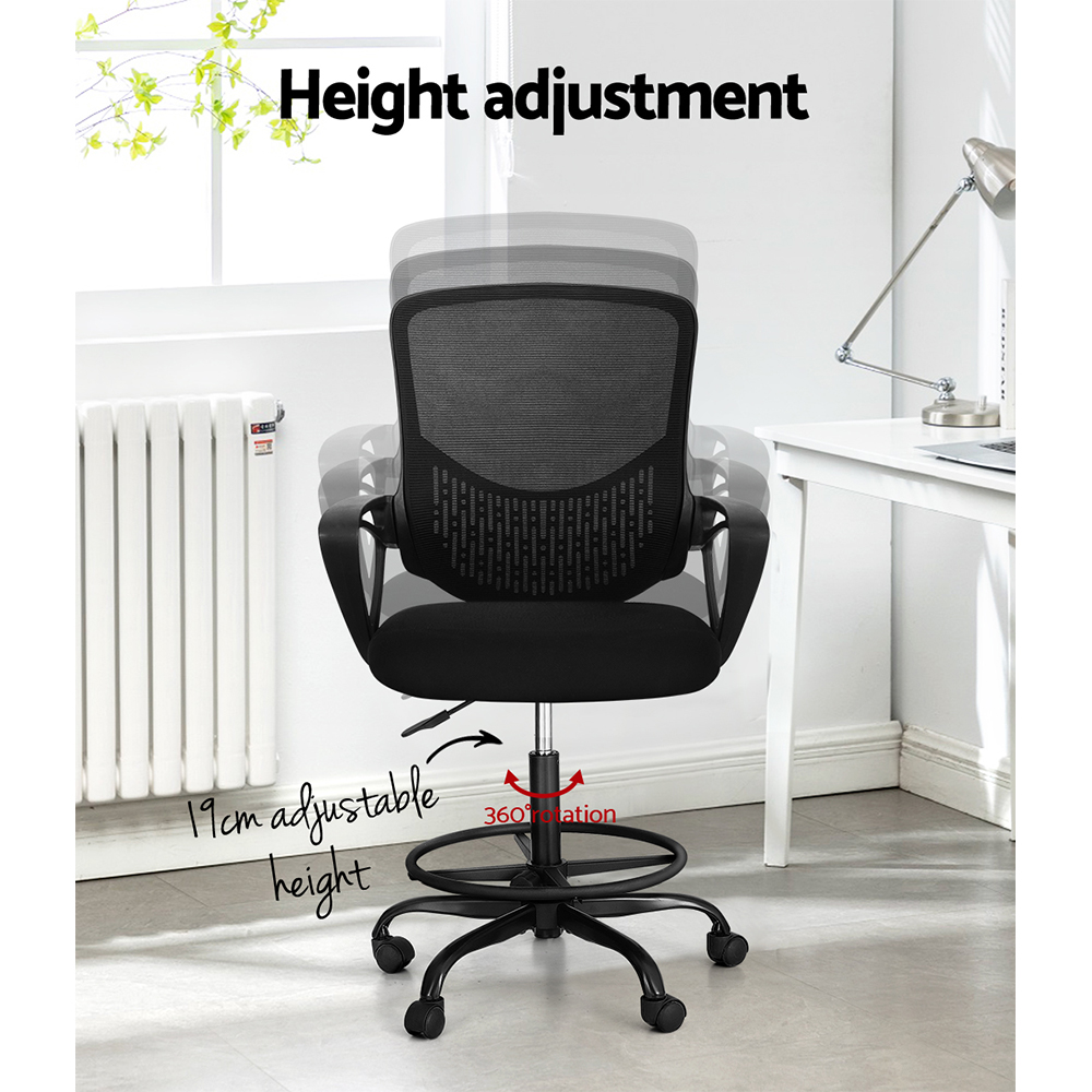 Artiss Office Chair Drafting Stool Computer Standing Desk Mesh Chairs Black