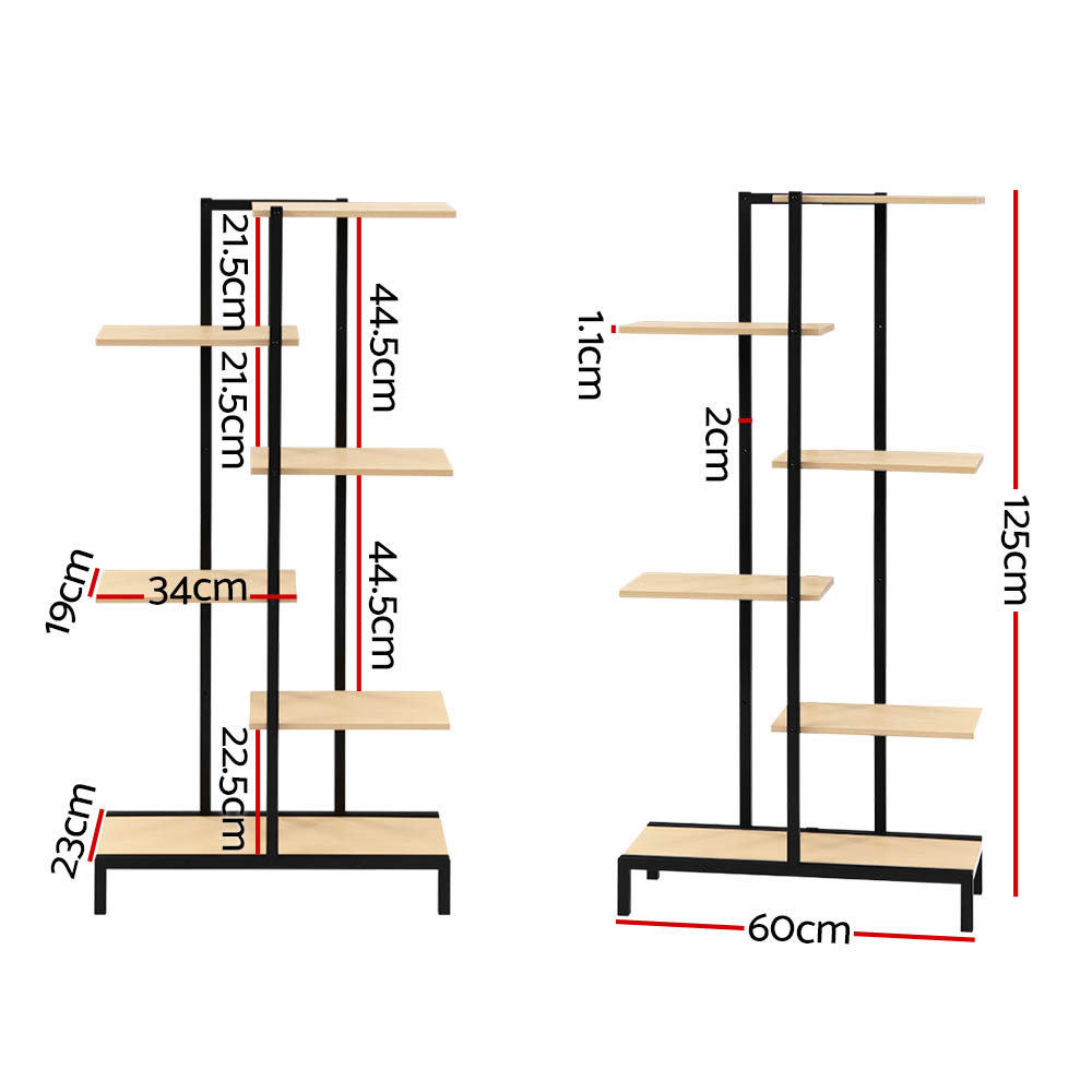 Display your plants in style with our Artiss Plant Stand. With its 6-tier zigzag shelving, the stand has ample space to show off your favourite flora in your home, patio, deck or balcony. Featuring premium E1 particle board shelves and black powder-coated metal frame, the stand is not only solidly constructed but has a unique yet sophisticated design with minimalist lines that is sure to be a standout display piece wherever you decide to place it. The stand also features anti-slip feet and heavy-duty fixings for enhanced stability and weight capacity. Not least, you can also mix the display of plants with your favourite collectibles for a very interesting display.