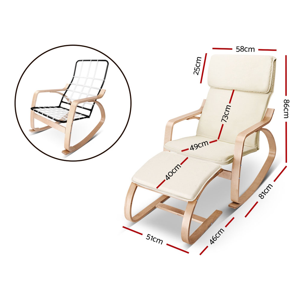 Artiss Rocking Armchair Footstool Bentwood Beige