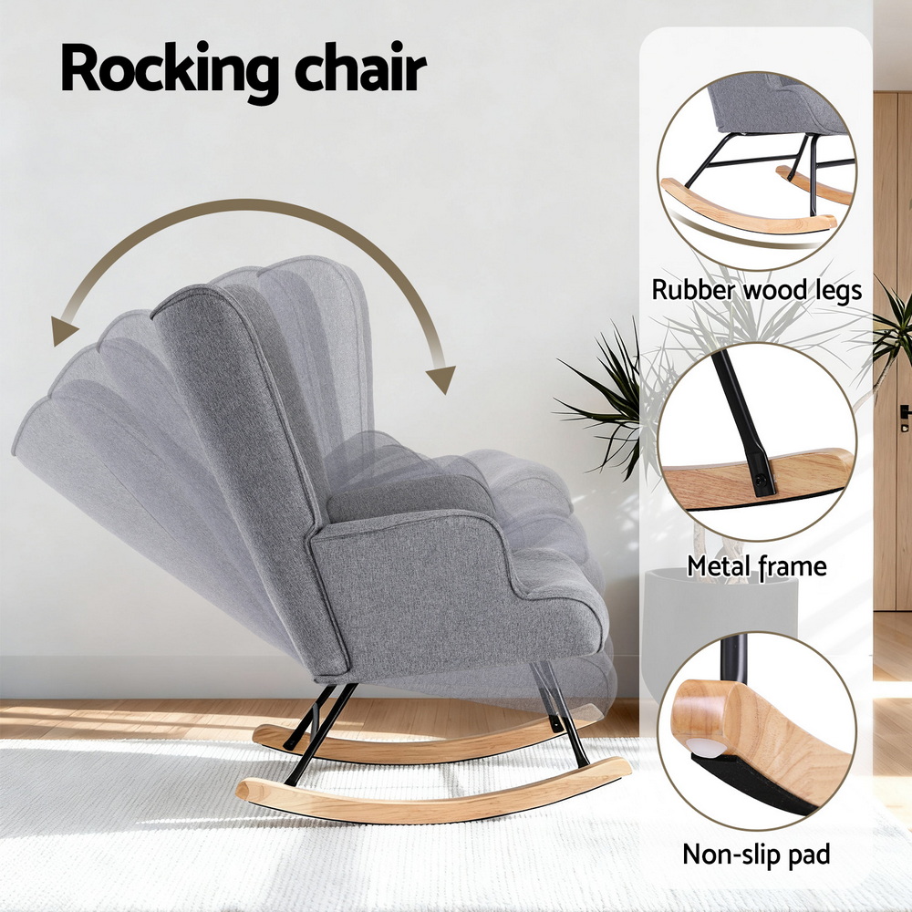 Artiss Rocking Armchair Nursing Chair Linen Fabric Grey