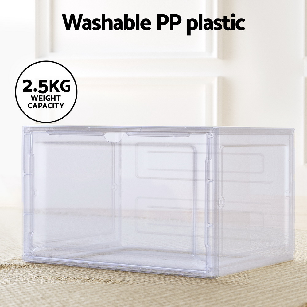 For home shoe storage, you can’t beat the Sade Shoe Storage Boxes from Artiss. With a foldable and stackable design, these shoe boxes are not only space-saving but also incredibly convenient. Made from premium PP plastic, they are durable and can hold up to 2.5kg of weight per box. Each box is easy to clean thanks to its smooth surface. The ventilated hole ensures proper air circulation, keeping your shoes fresh and odour-free. The magnetic flip-out lid allows for easy access to your shoes, while the multifunctional design makes them suitable for various uses. Assembly is a breeze, making these shoe boxes a hassle-free addition to your home. With Sade shoe boxes, you can keep your shoes organized and protected in style.