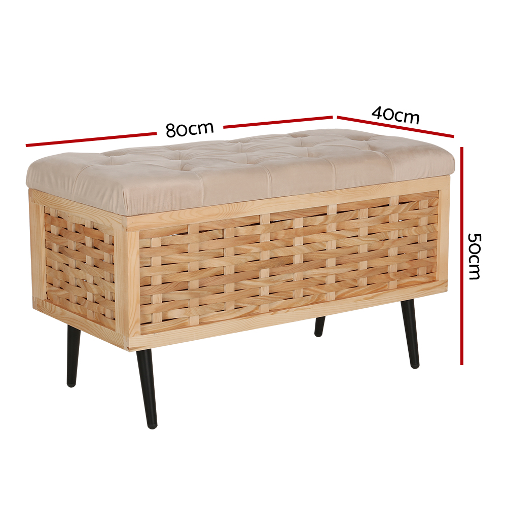 Artiss Storage Ottoman Blanket Box 80cm Weaved Velvet Pine