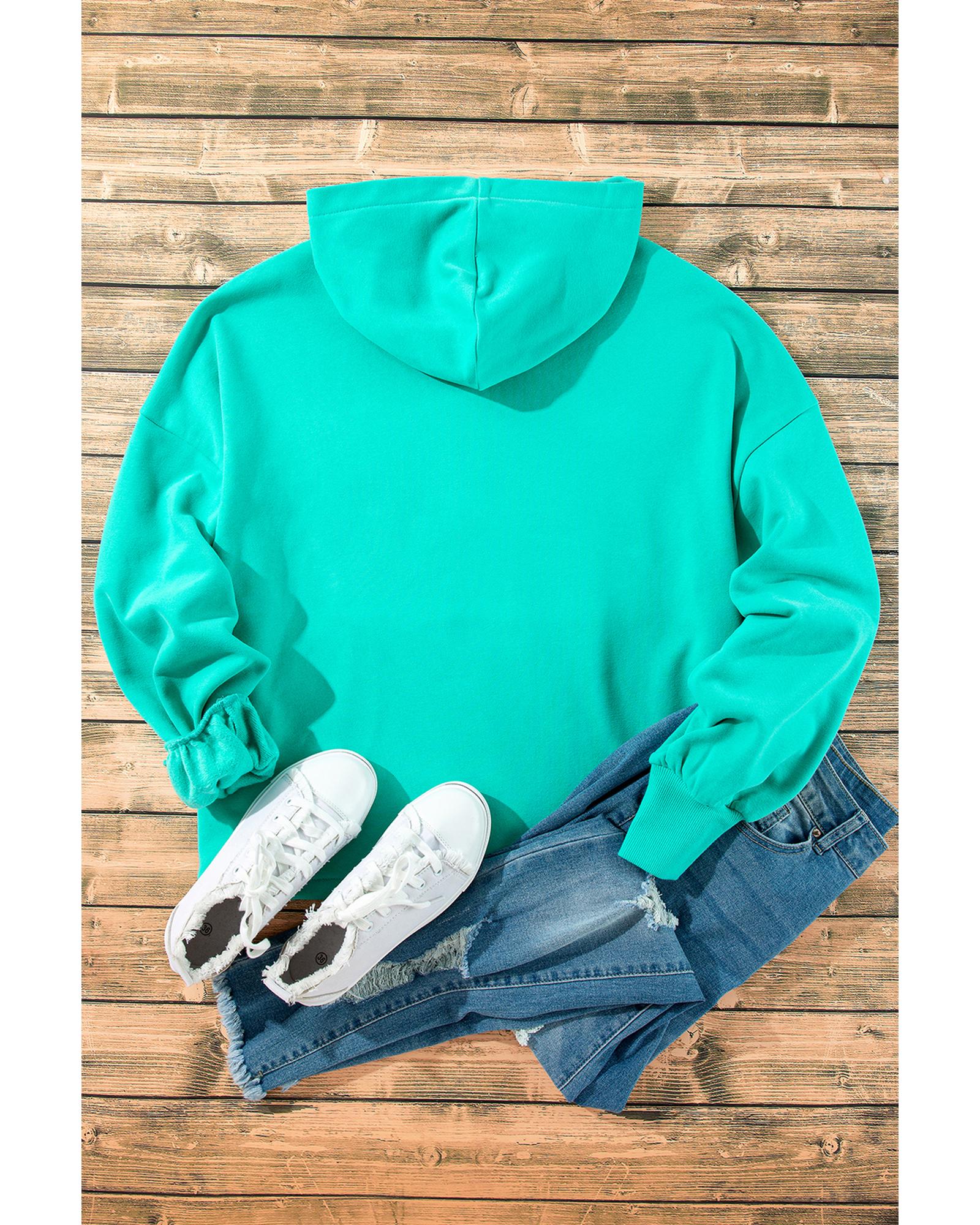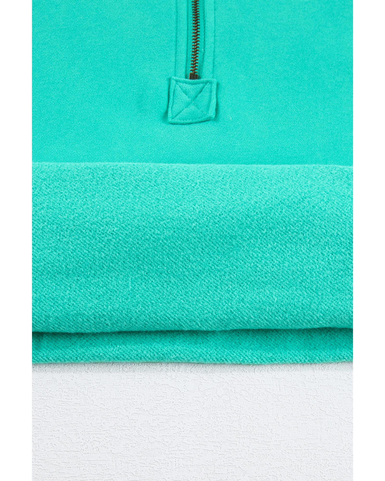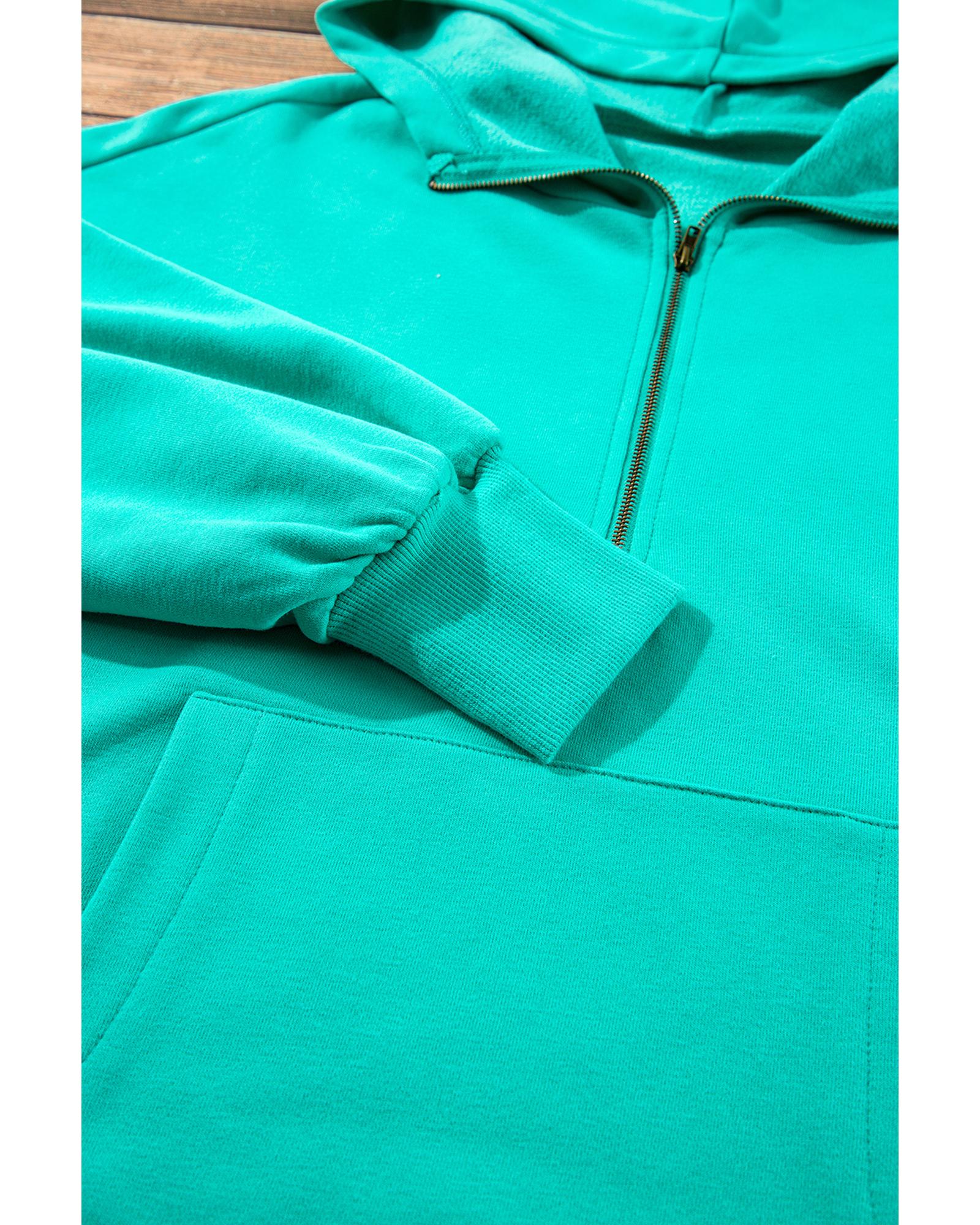 • Aruba Blue Fleece Lined Half Zipper Kangaroo Pockets Loose Hoodie