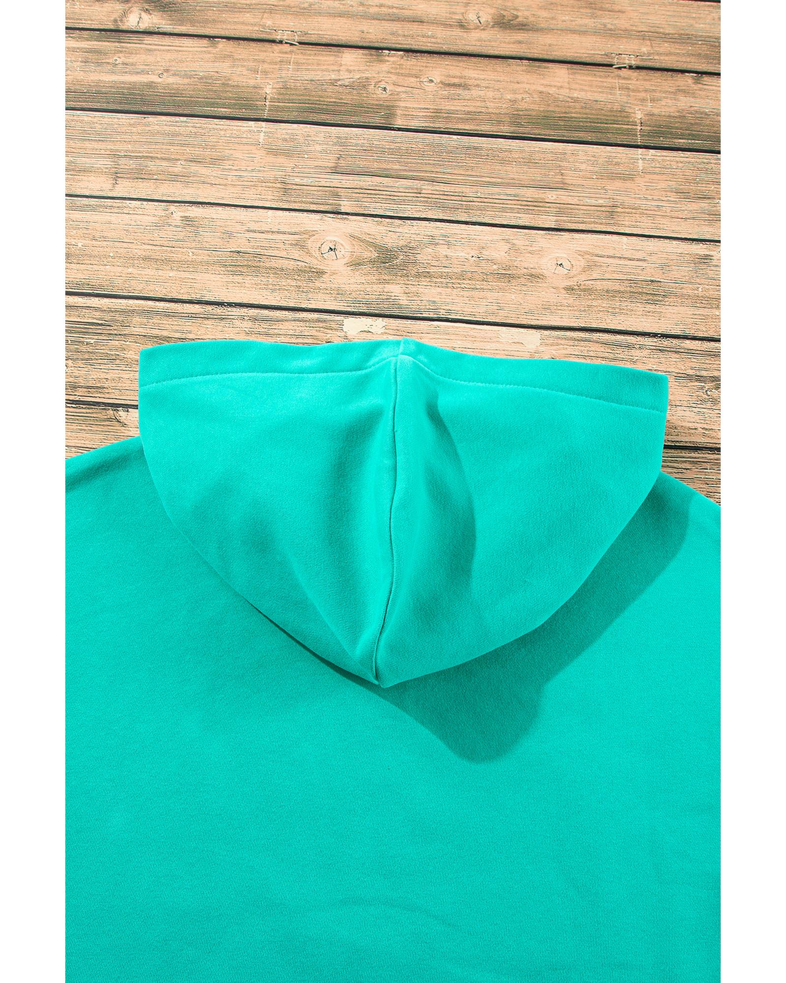 - Aruba Blue Fleece Lined Half Zipper Kangaroo Pockets Loose Hoodie