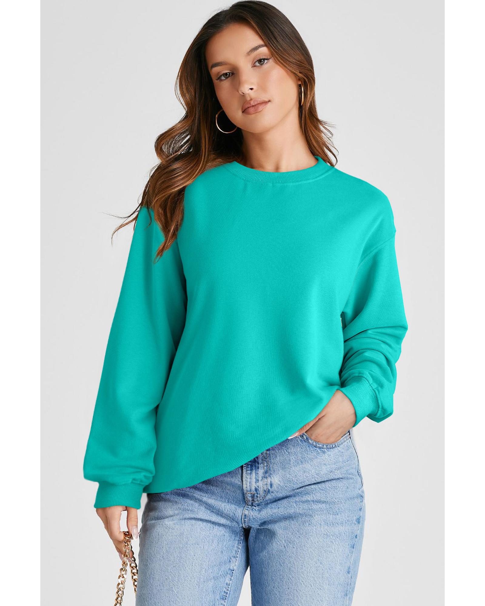 Aruba Blue Plain Drop Shoulder Crewneck Pullover Sweatshirt – M