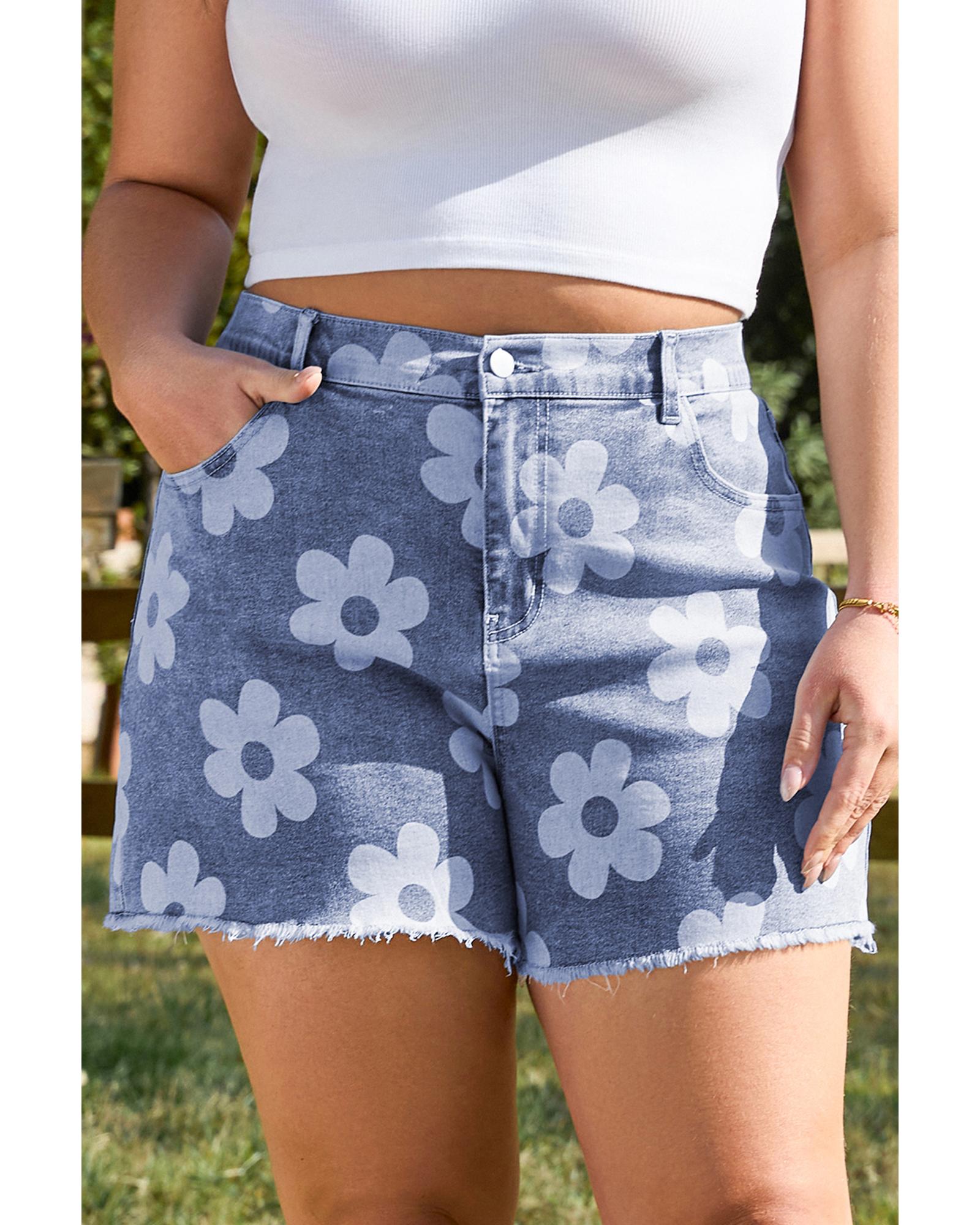 Ashleigh Blue Floral Pattern High Waist Raw Hem Plus Size Denim Shorts – 4X