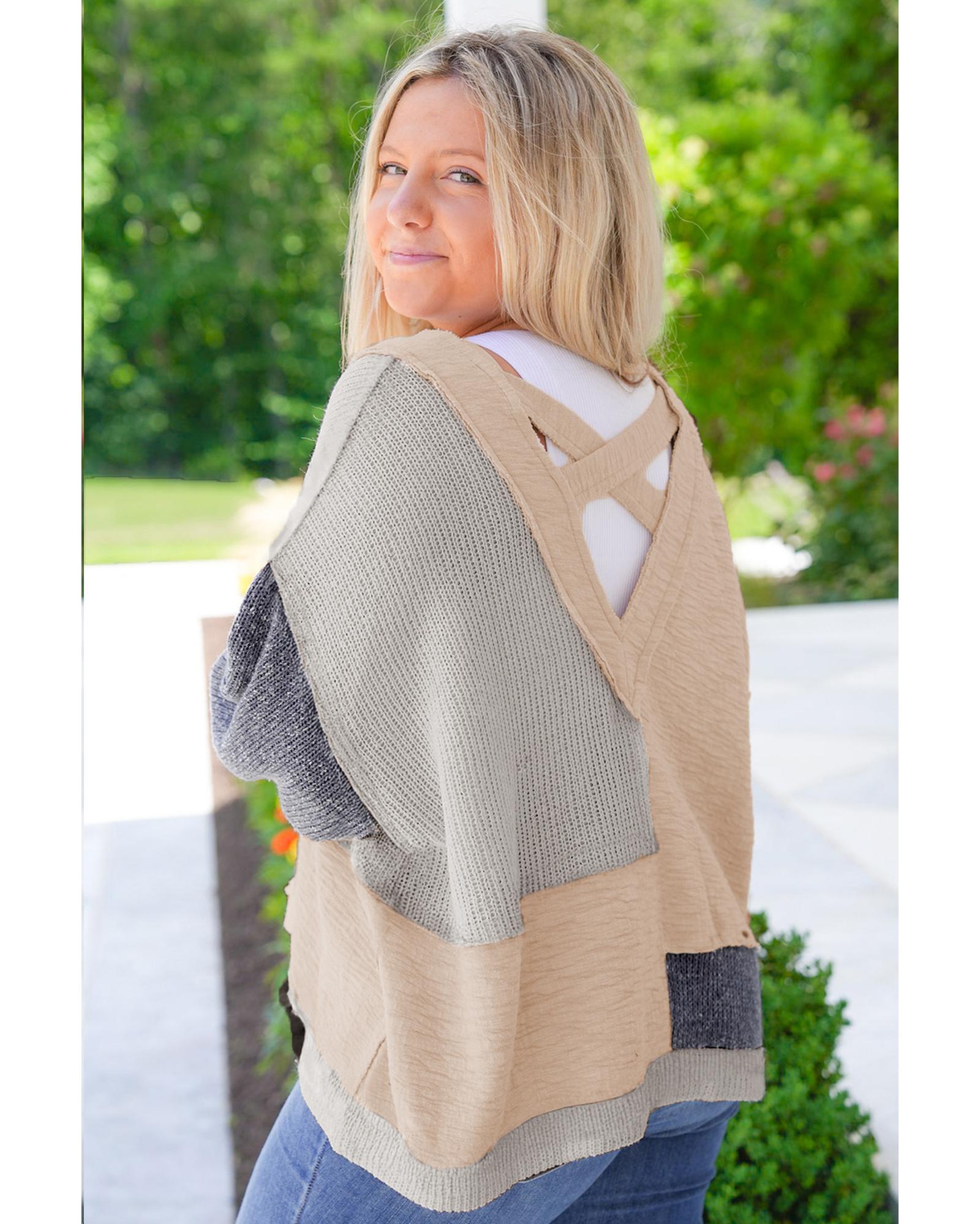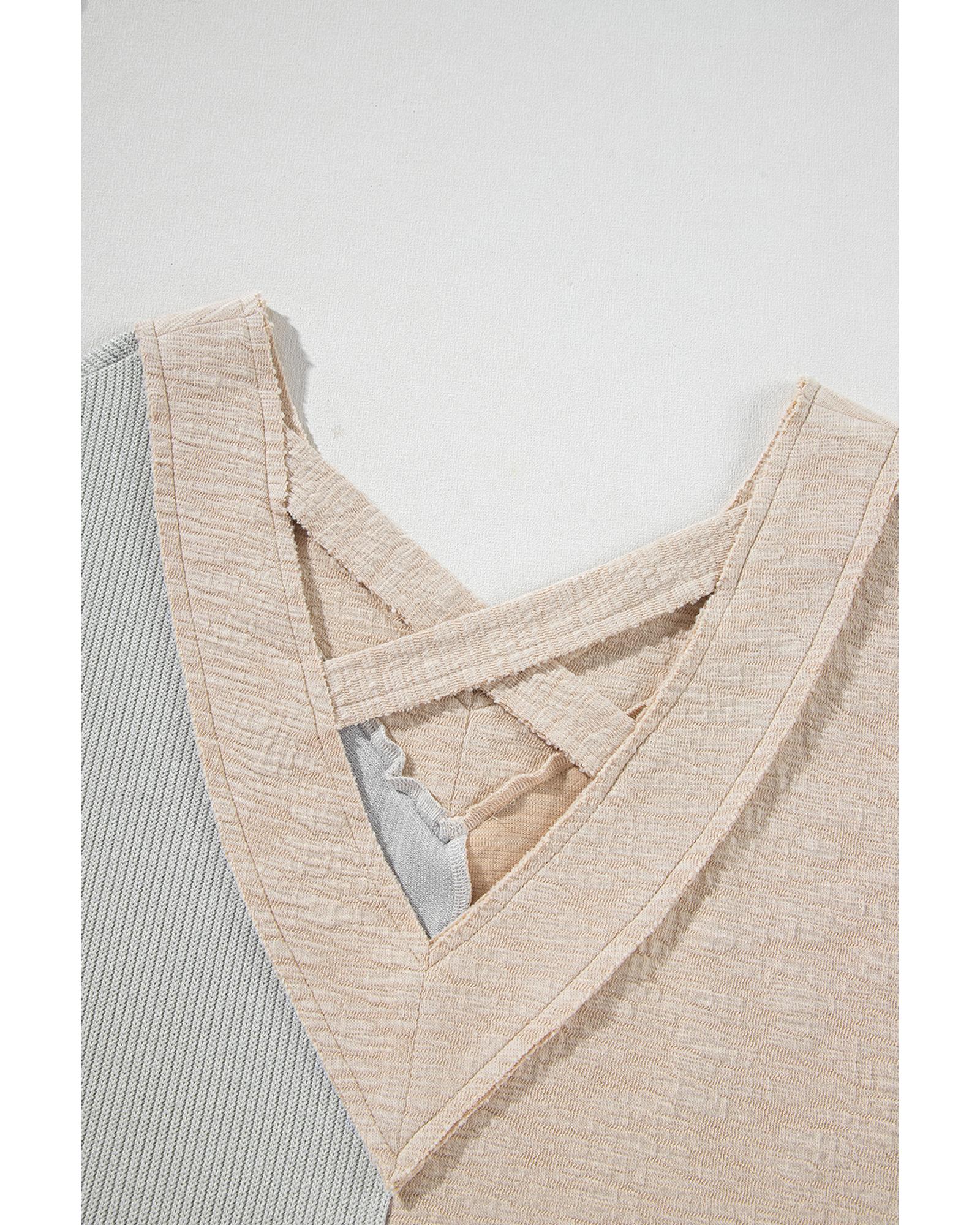 Ashleigh Blue Plus Size Textured Colorblock Patchwork V Neck Top – 2X