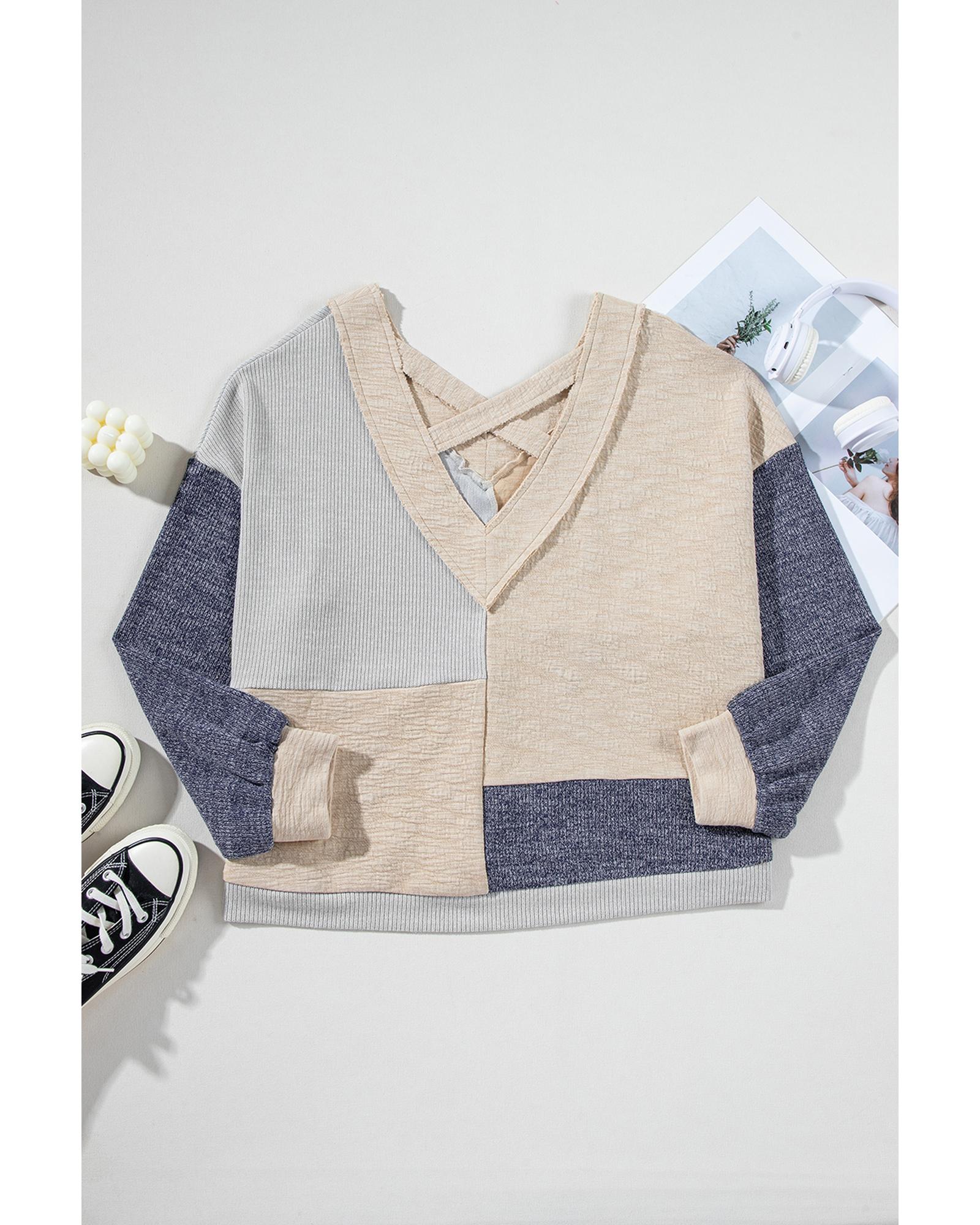 Ashleigh Blue Plus Size Textured Colorblock Patchwork V Neck Top – 4X