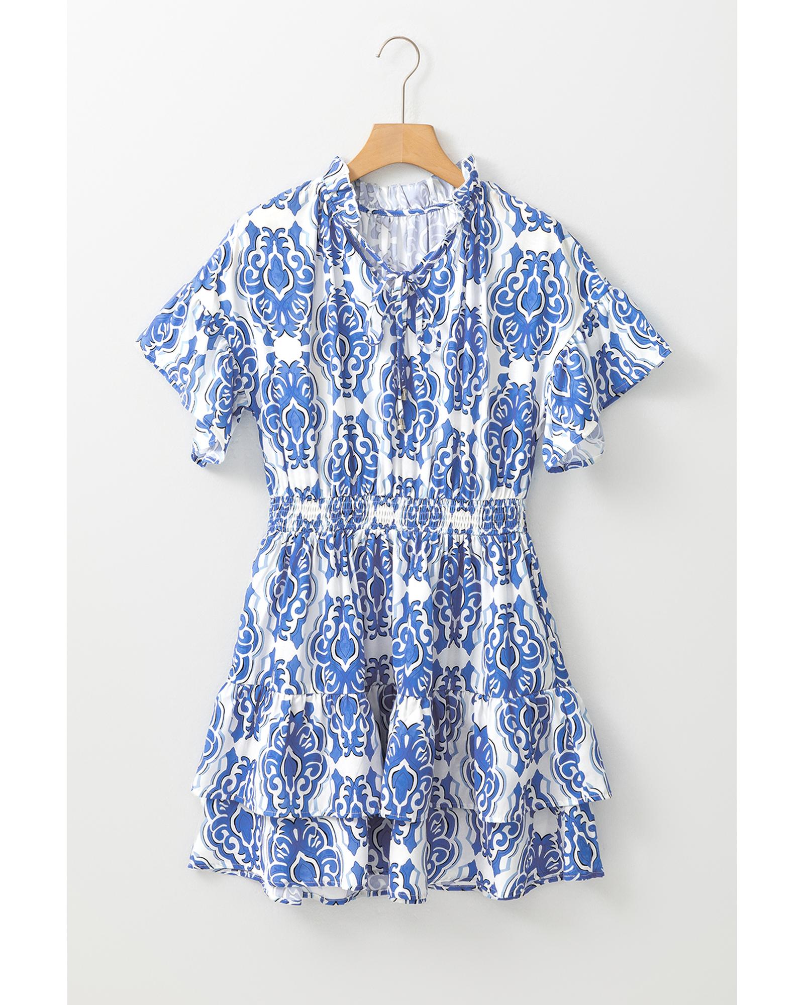 Ashleigh Blue Vintage Floral Print Wide Ruffled Sleeve Dress – L