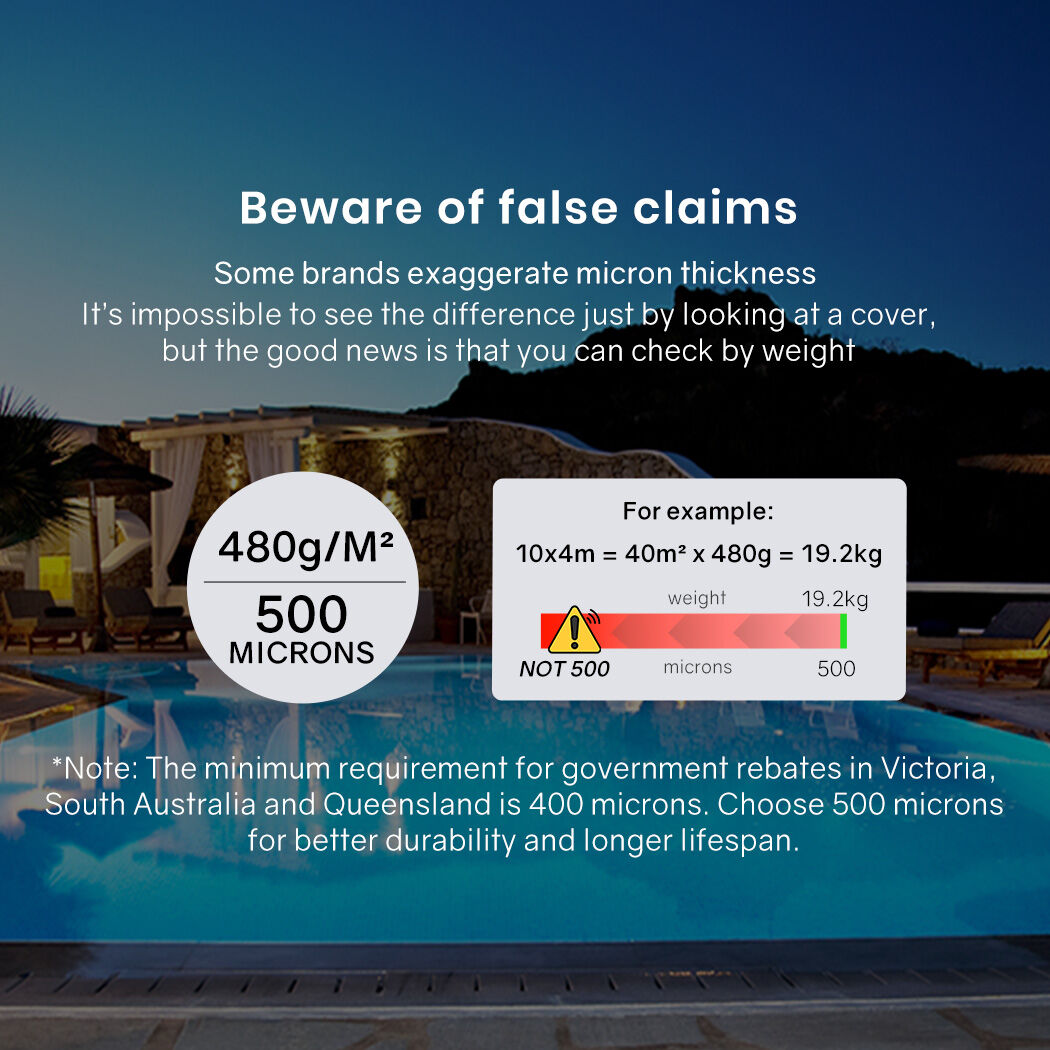 - Pool Cover Material: Polyethylene500 Micron Bubble