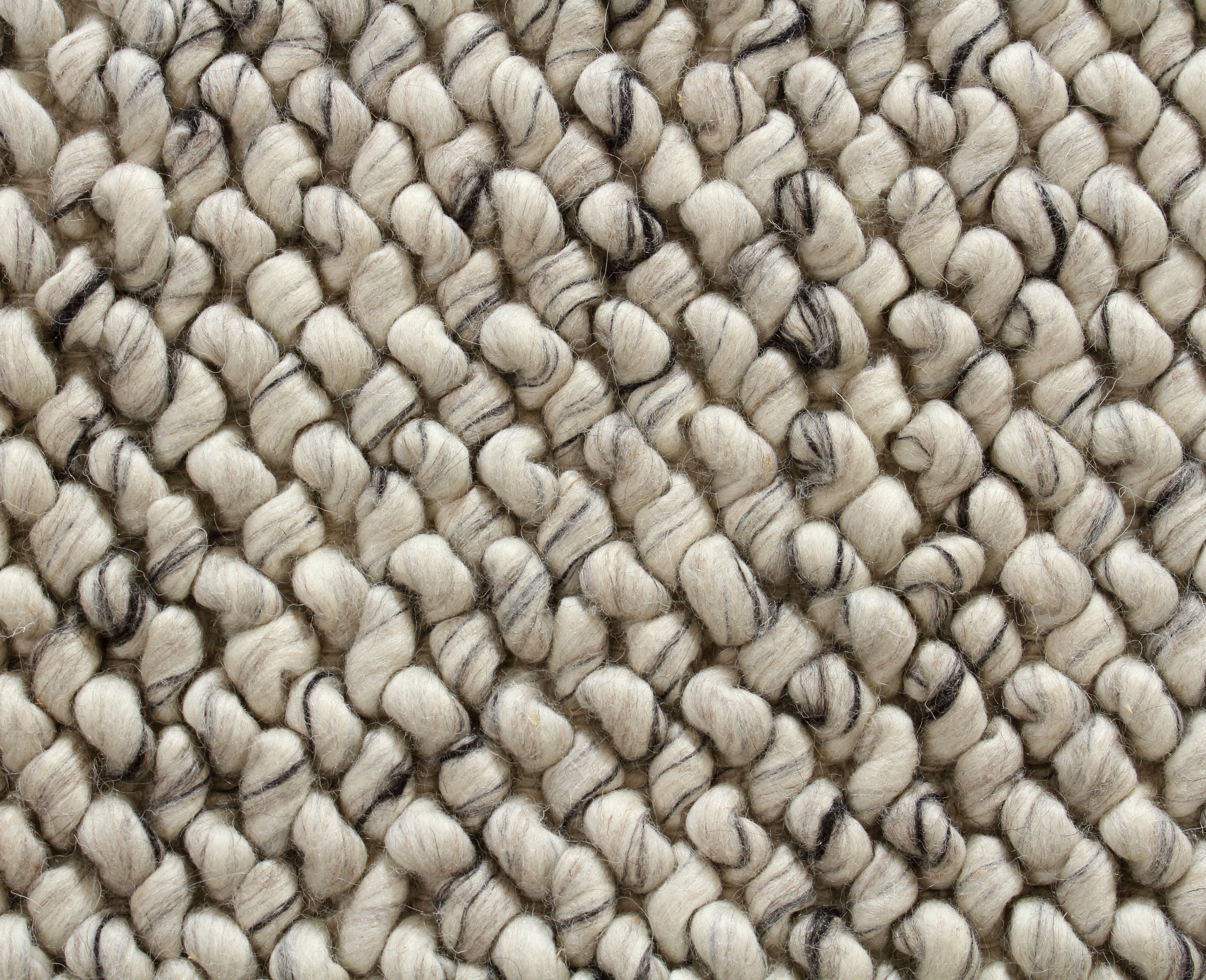 The Aurora collection is a stunning pattern of concentric diamonds that textures this rug is created by pairing up lines of chunky wool loops. The delightful bobbles show off the naturally occurring ivory and ash grey hues of the wool, while the high-low effect adds depth and fascination to the monochromatic rug. Hand-tufted by skilled craftspeople, the durable area rug stands up to high-traffic areas of the home. Eye-catching, beautiful, and soft to the underfoot are truly worth looking for in any rug.