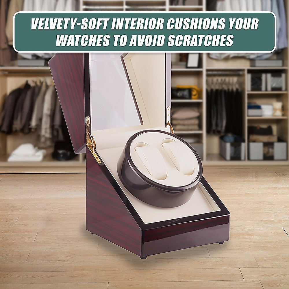 Automatic Dual Watch Winder Wood Display Box Case Motor Rotation Storage