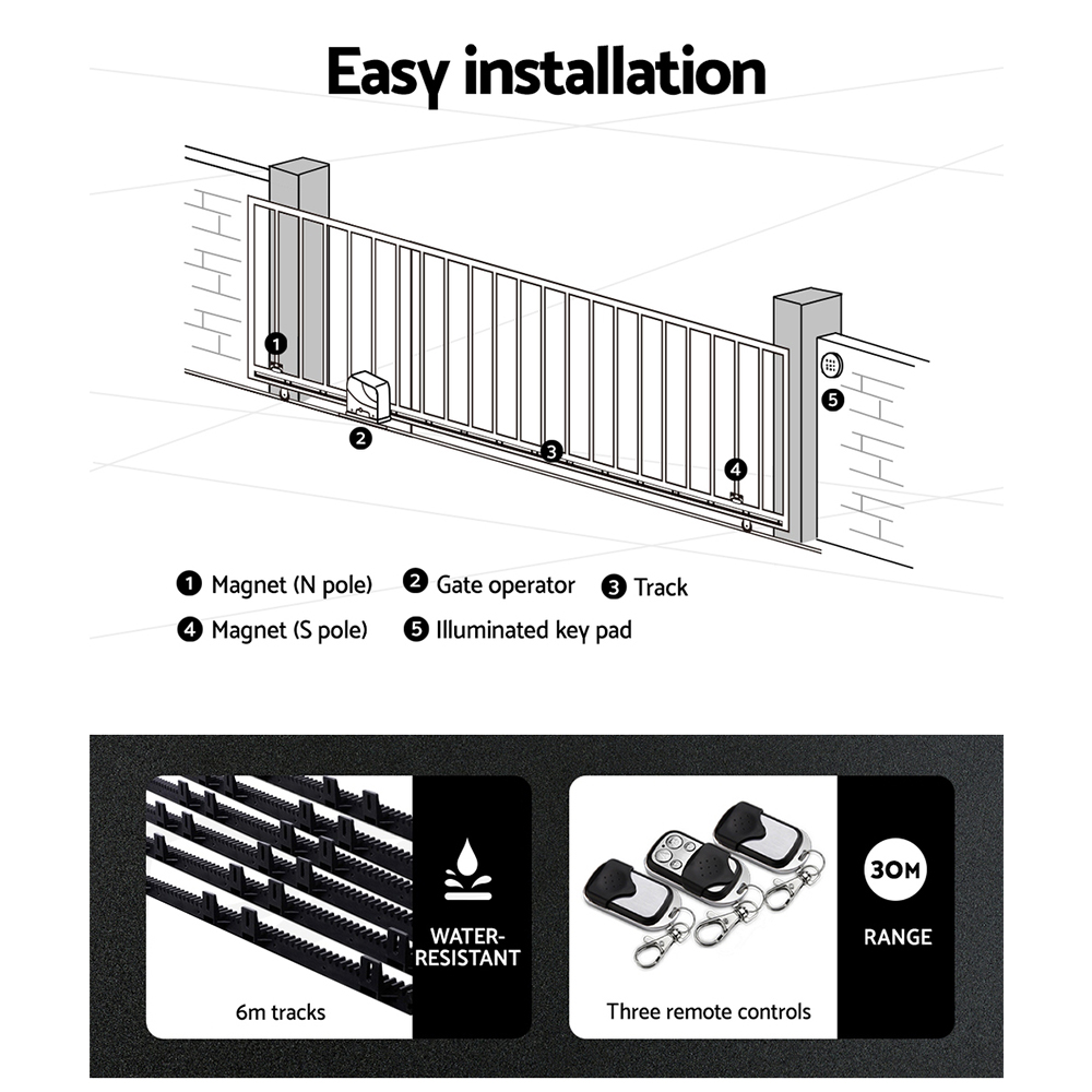Automatic Sliding Gate Opener Kit 10W Solar 6M 600KG