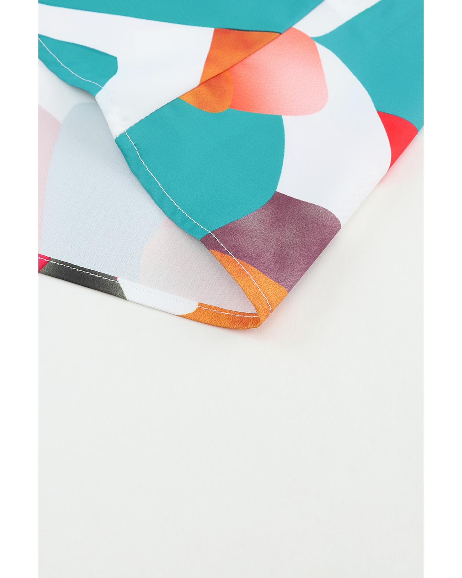- Multicolor Square Neck Abstract Print Short Sleeve Blouse