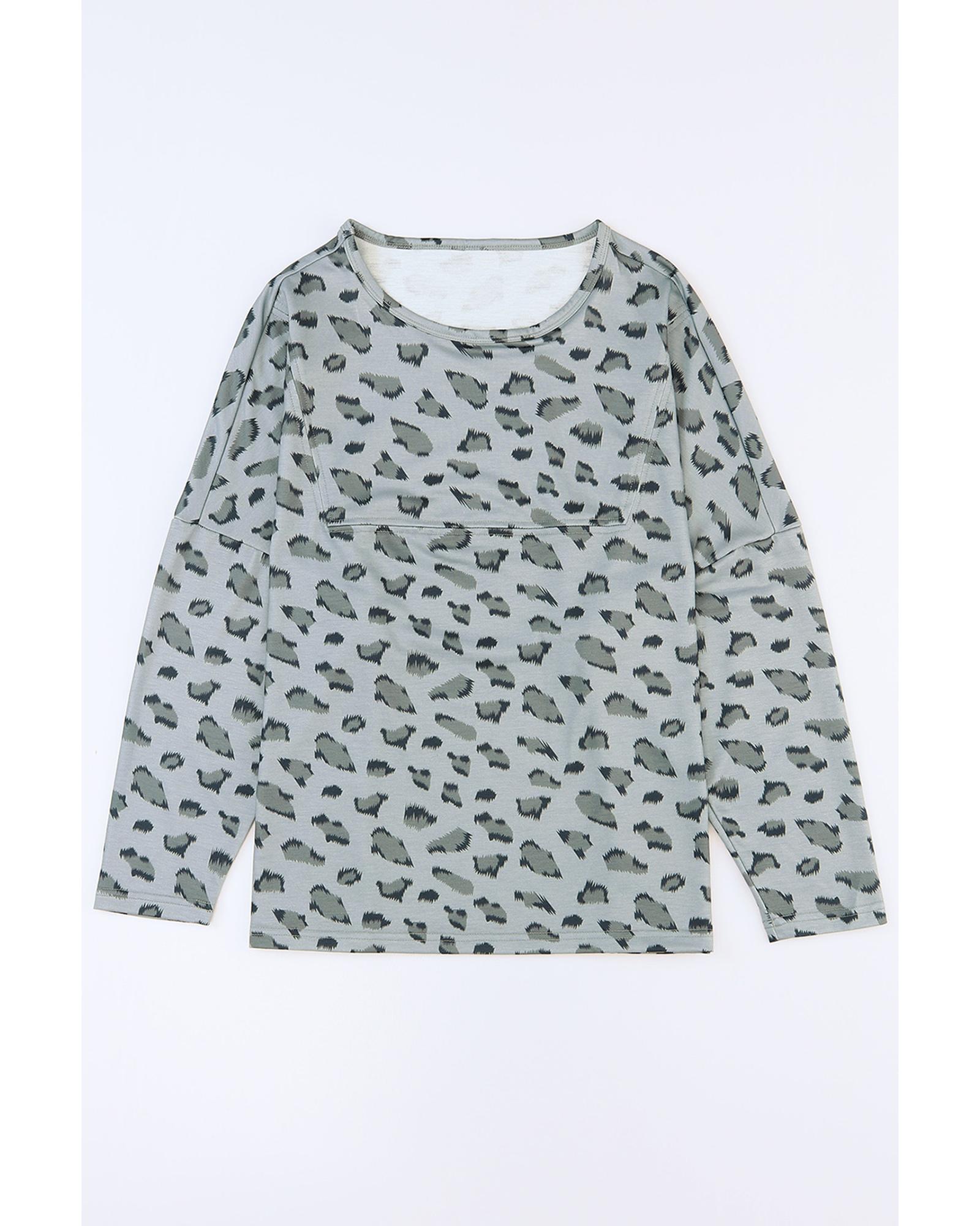 - Animal Print Stitching Loose Long Sleeve Top
