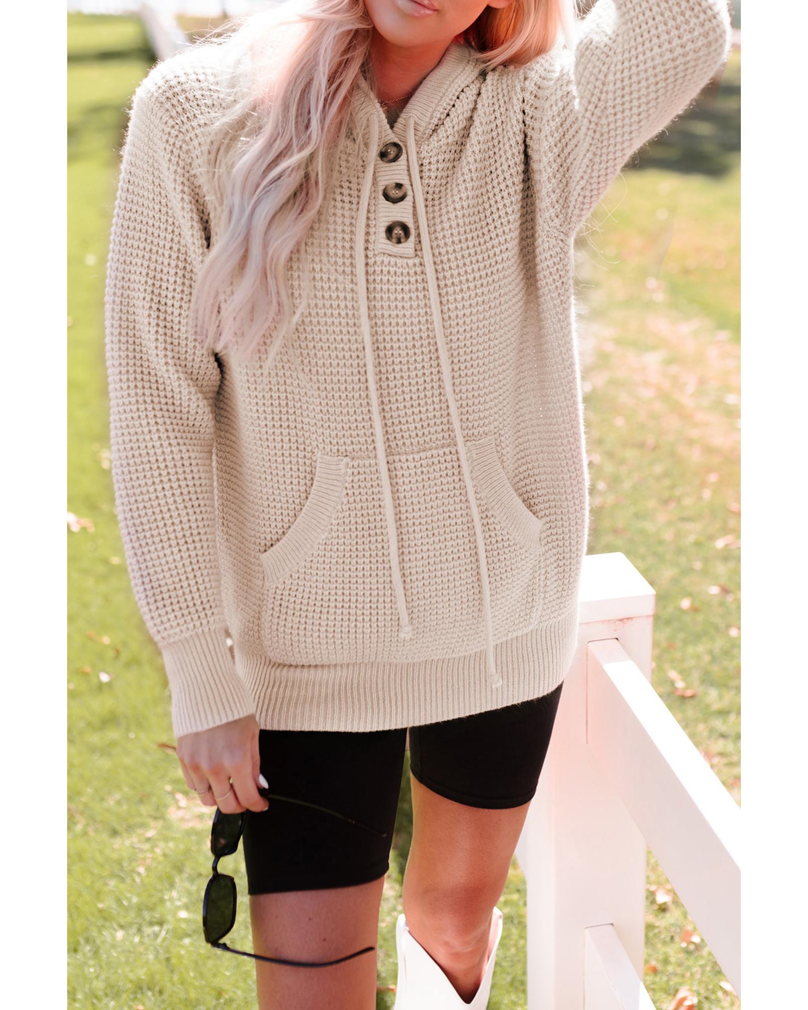 Azura Exchange Apricot Waffle Knit Buttons Hooded Sweater with Pocket – XL