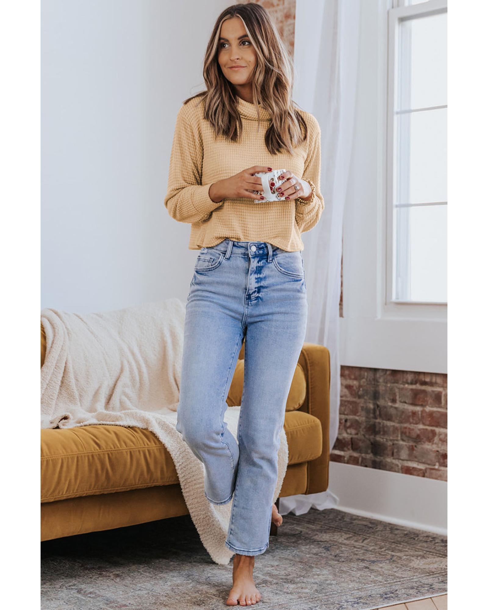 Azura Exchange Apricot Waffle Knit Turtleneck Top - M
