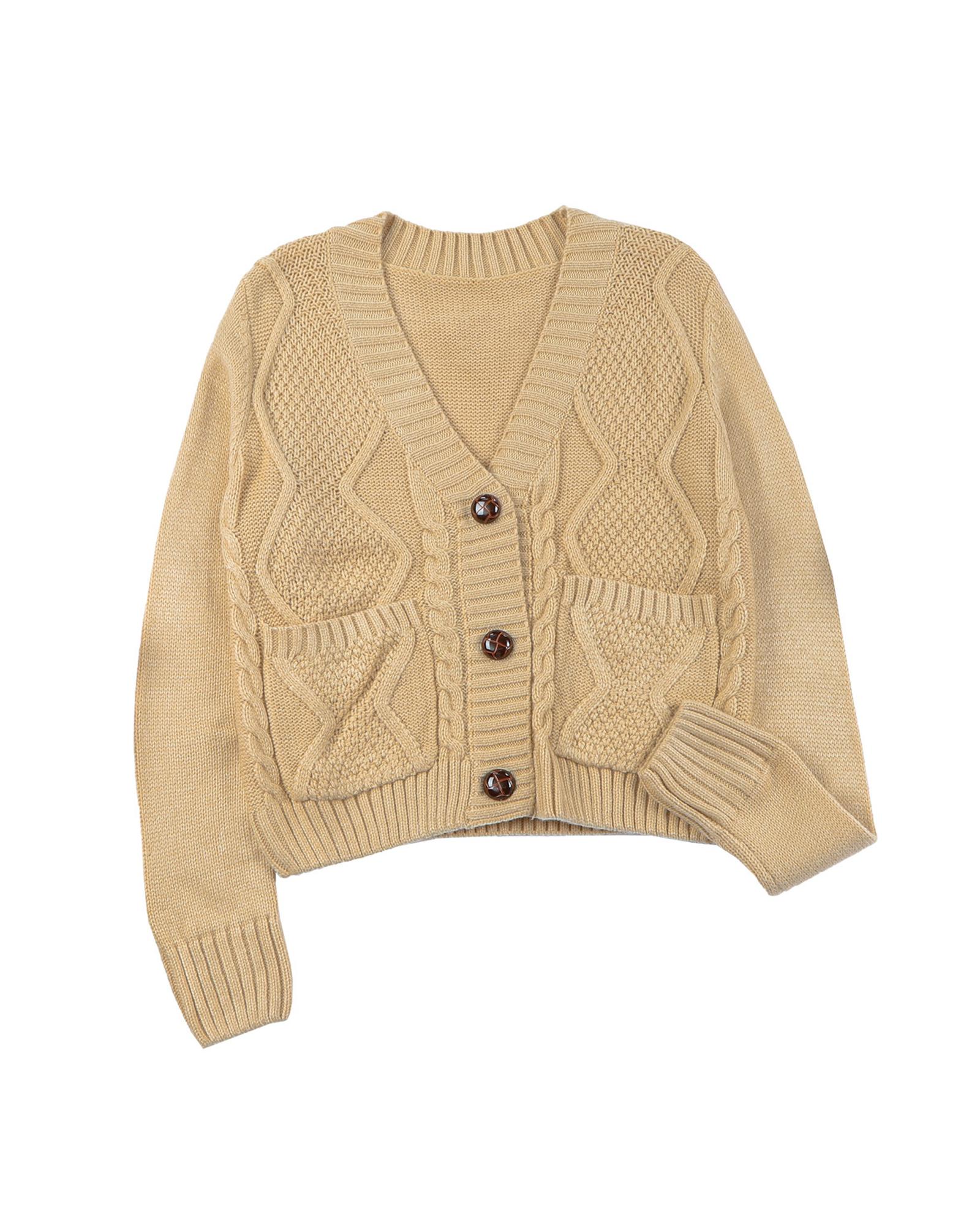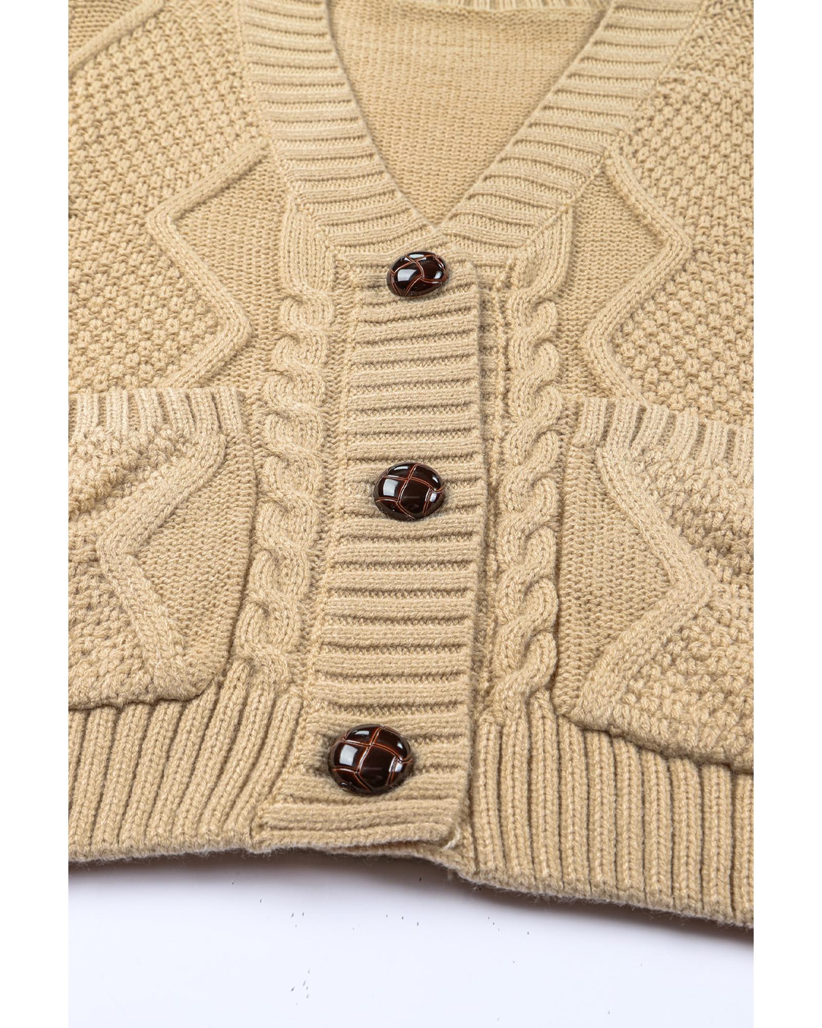 Azura Exchange Beige Front Pockets Buttons Textured Cardigan – 2XL