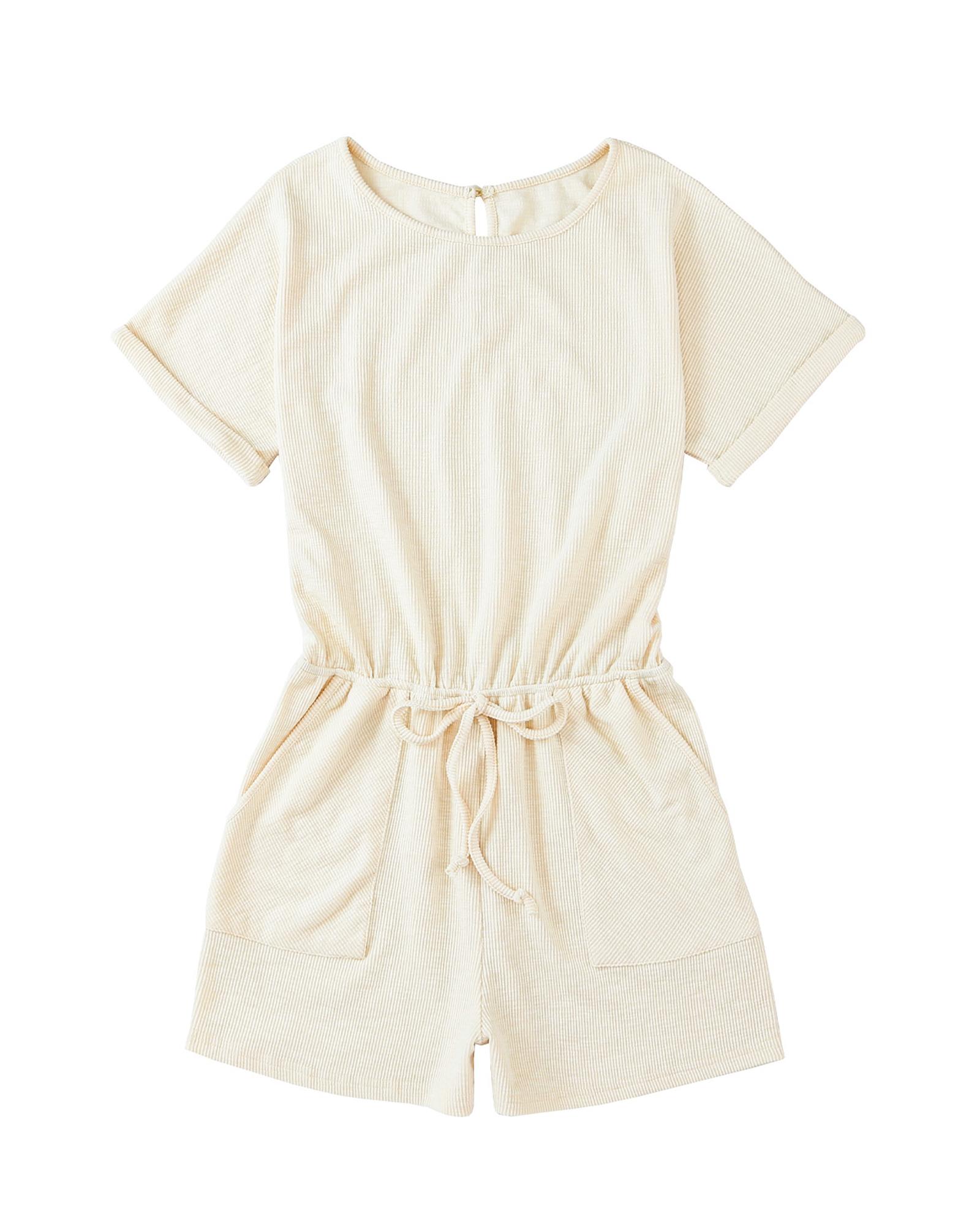 Azura Exchange Beige Ribbed Elastic Waist Romper – XL