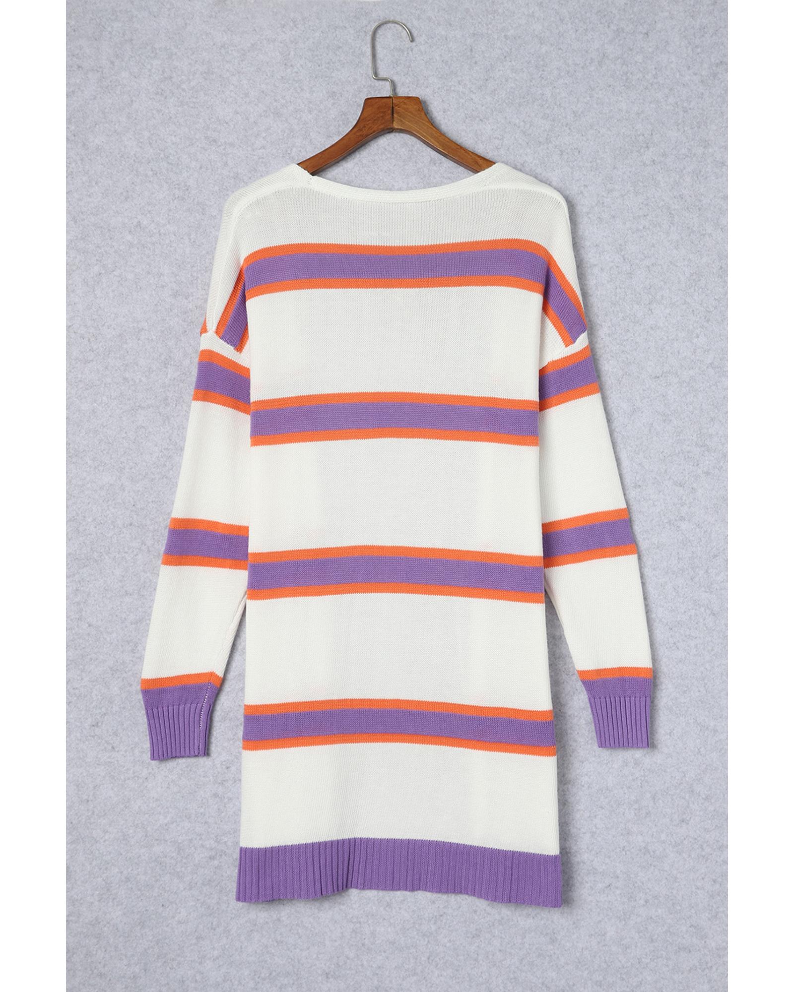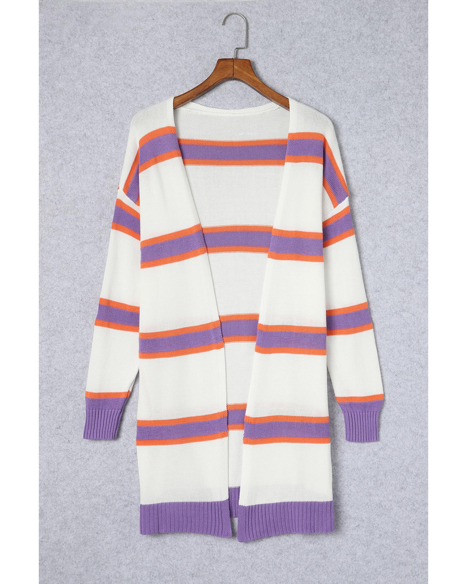 Azura Exchange Beige Striped Long Sleeve Ribbed Trim Button Cardigan – M