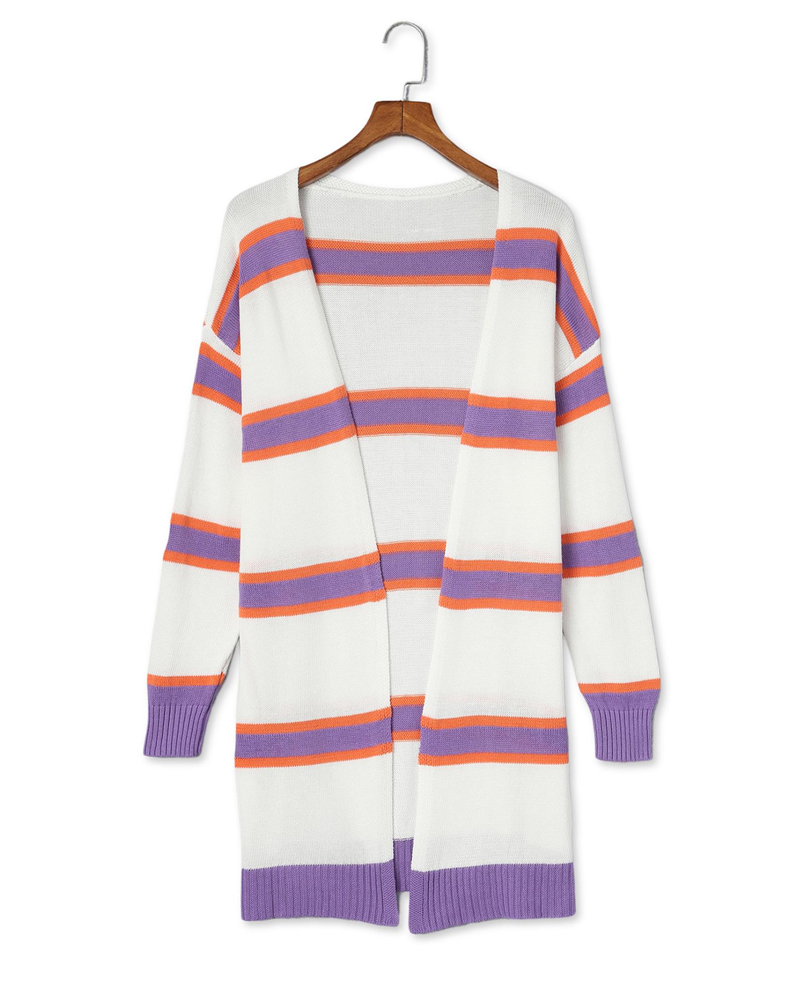 Azura Exchange Beige Striped Long Sleeve Ribbed Trim Button Cardigan – S