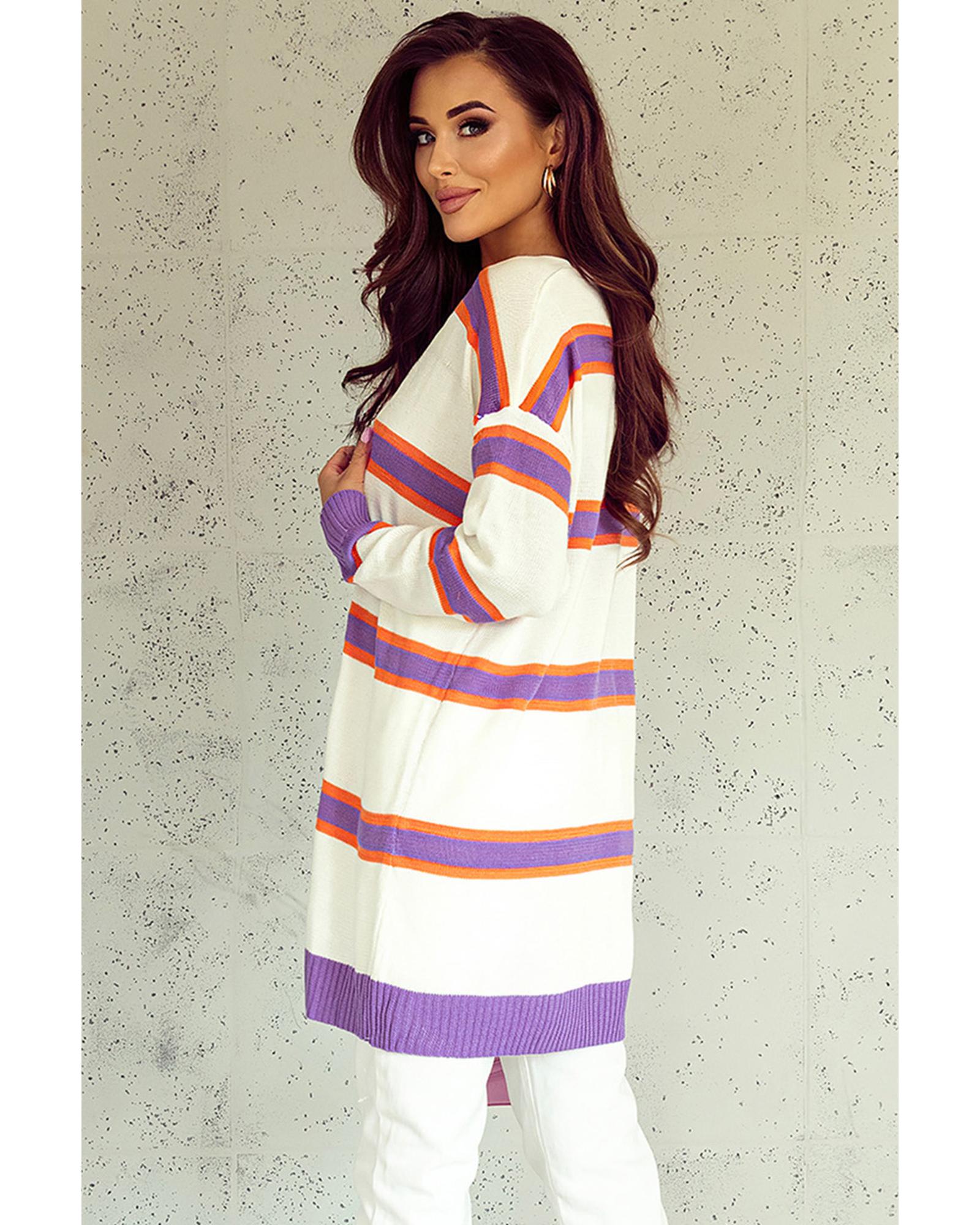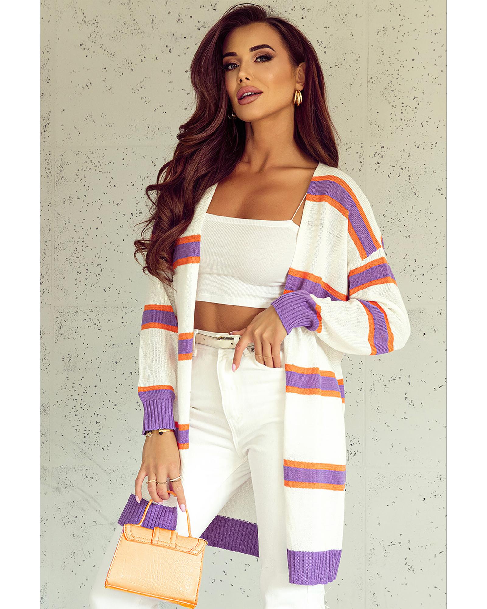 Azura Exchange Beige Striped Long Sleeve Ribbed Trim Button Cardigan – XL