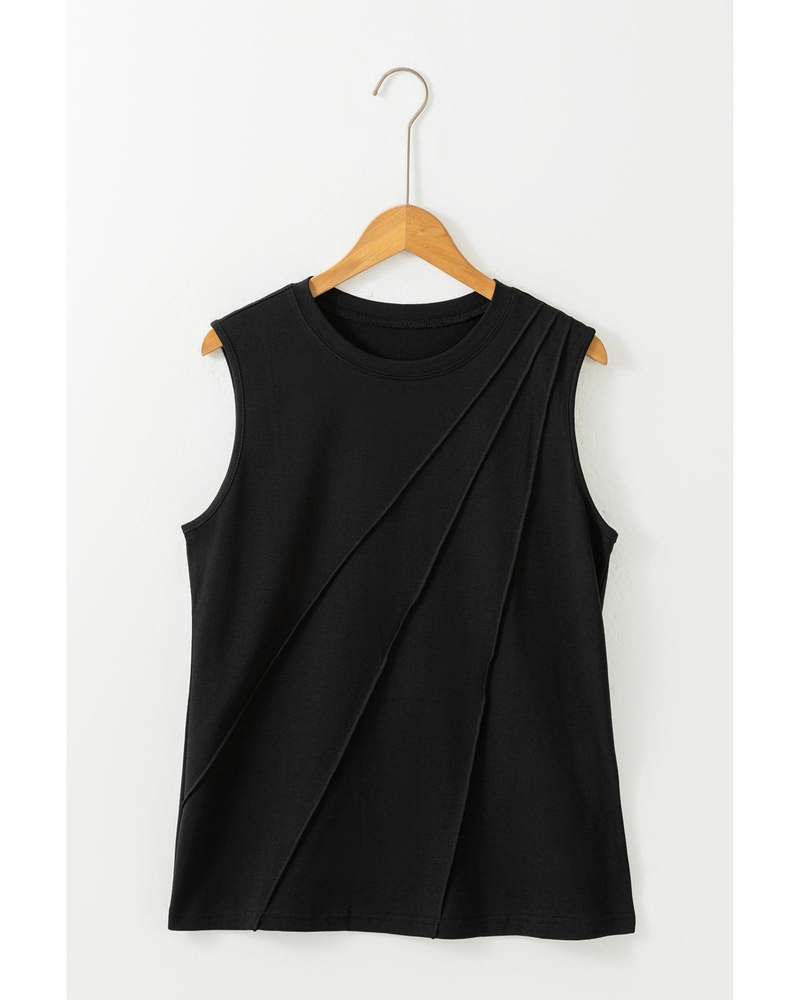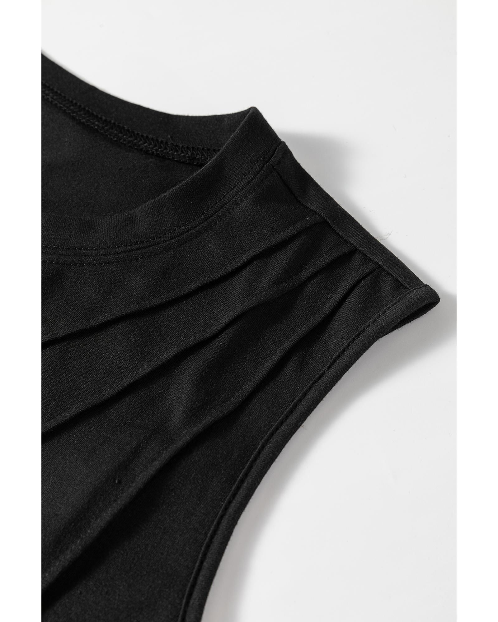 Azura Exchange Black Crew Neck Pleated Tank Top – XL