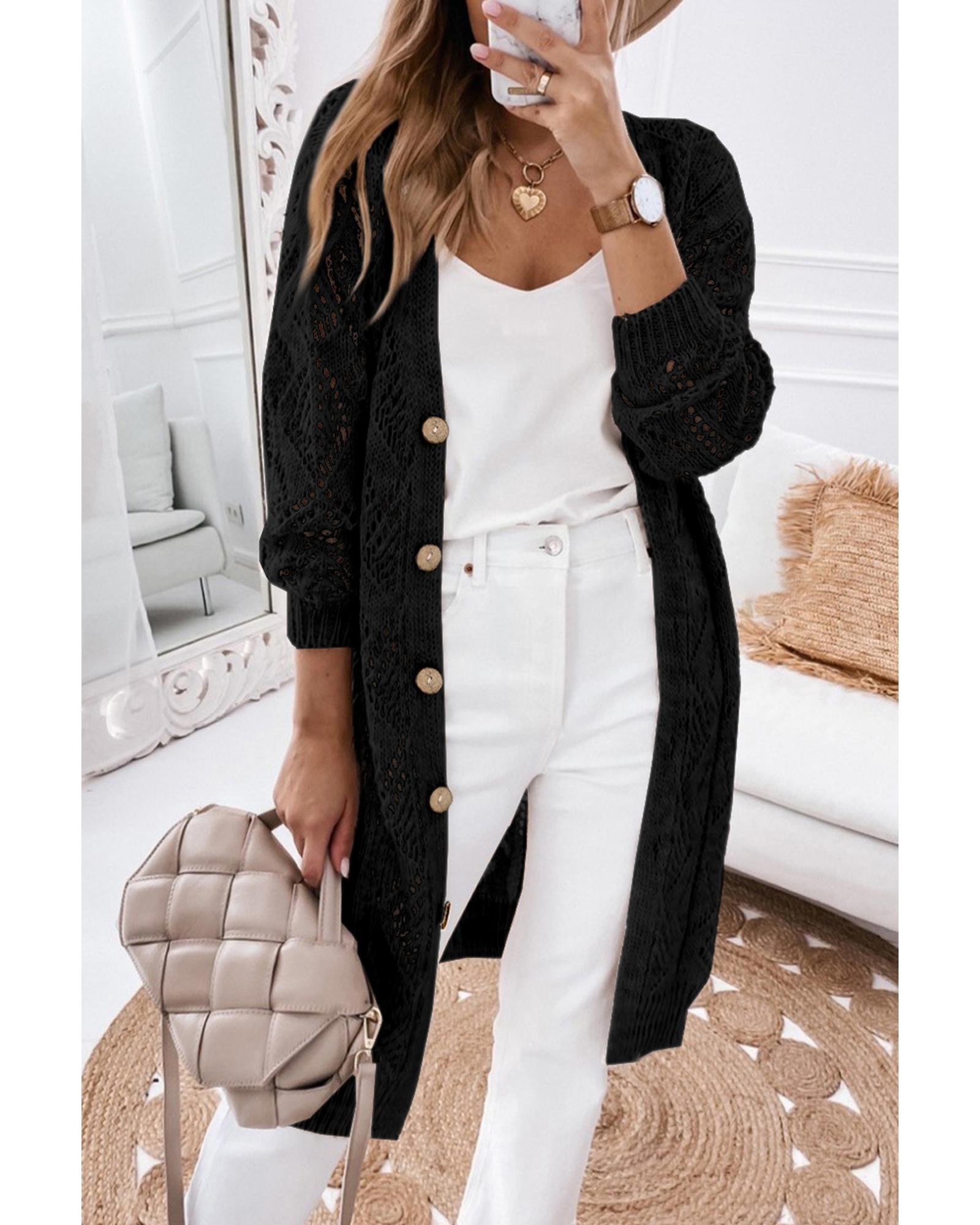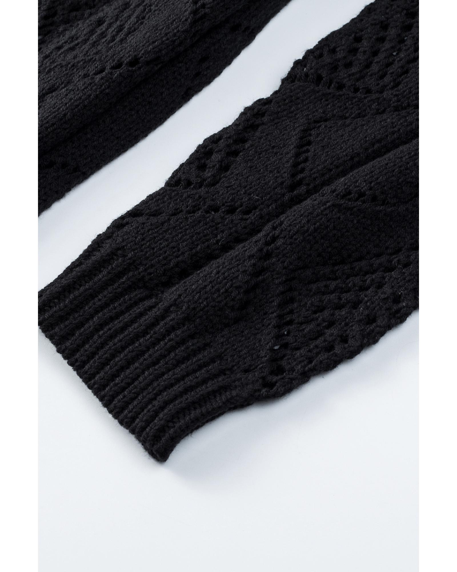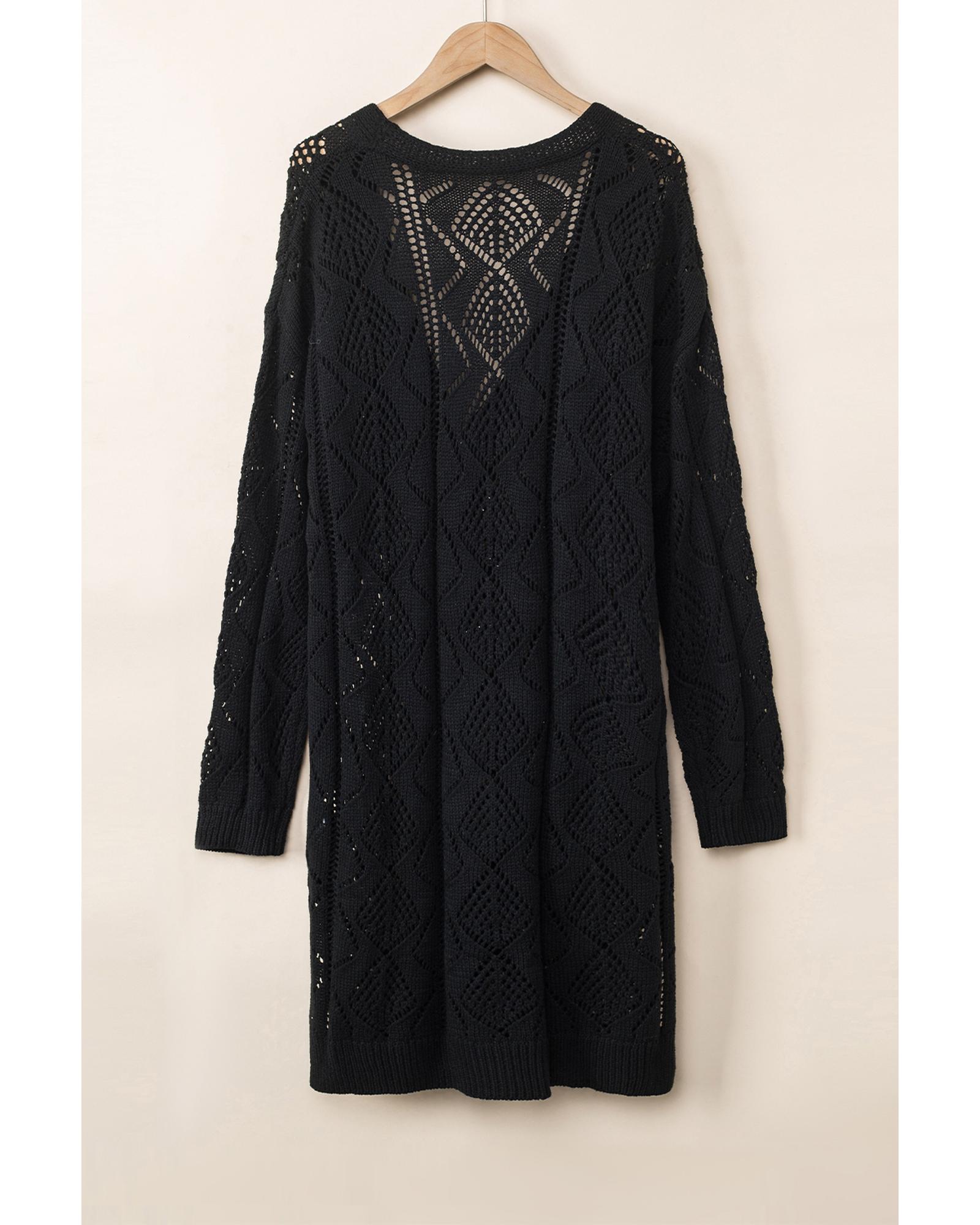 Azura Exchange Black Hollow-out Openwork Knit Cardigan – L