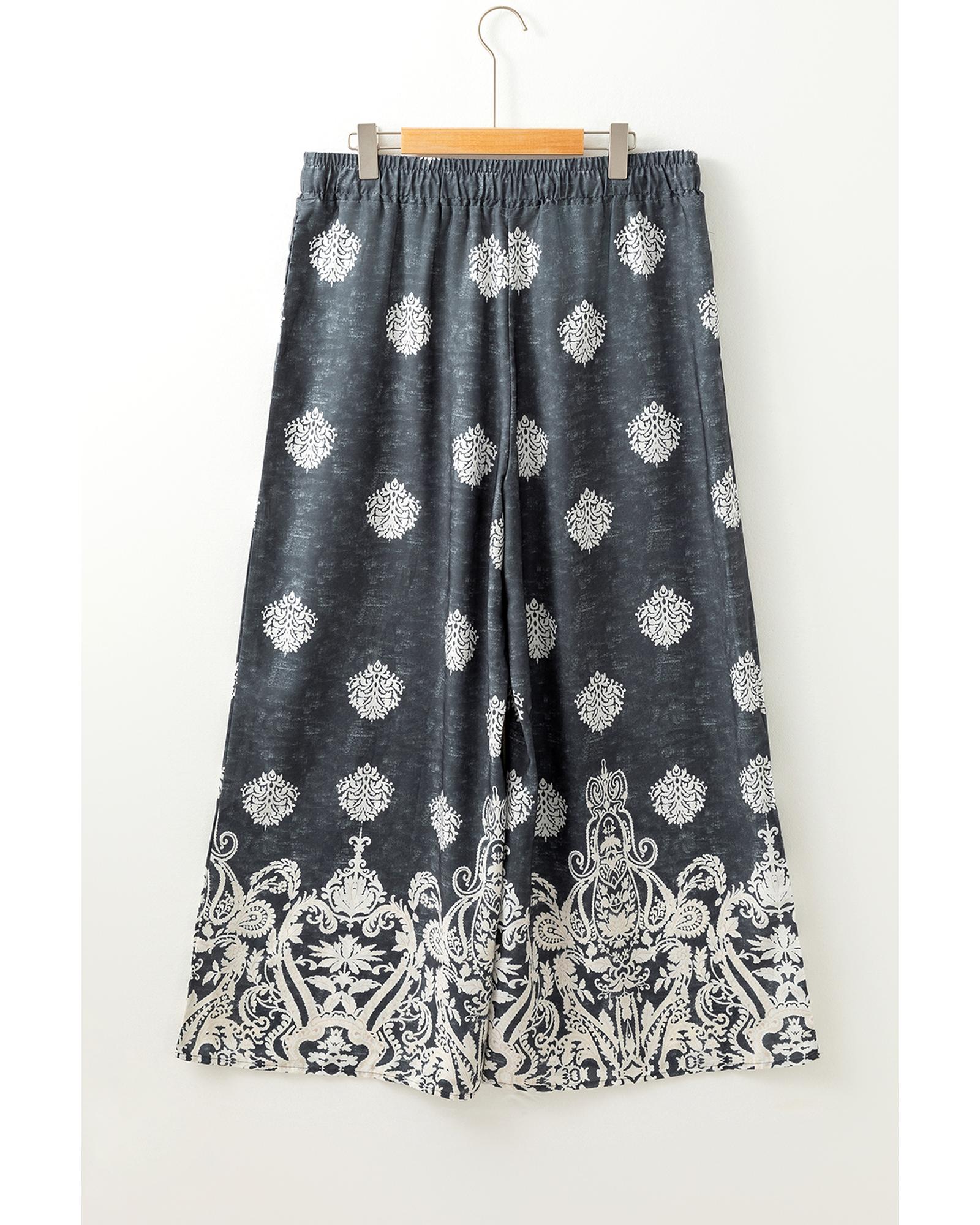Azura Exchange Black Plus Size Geometric Ethnic Print Drawstring Wide Leg Pants – 2X