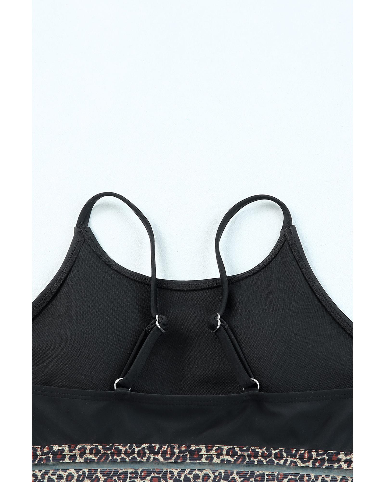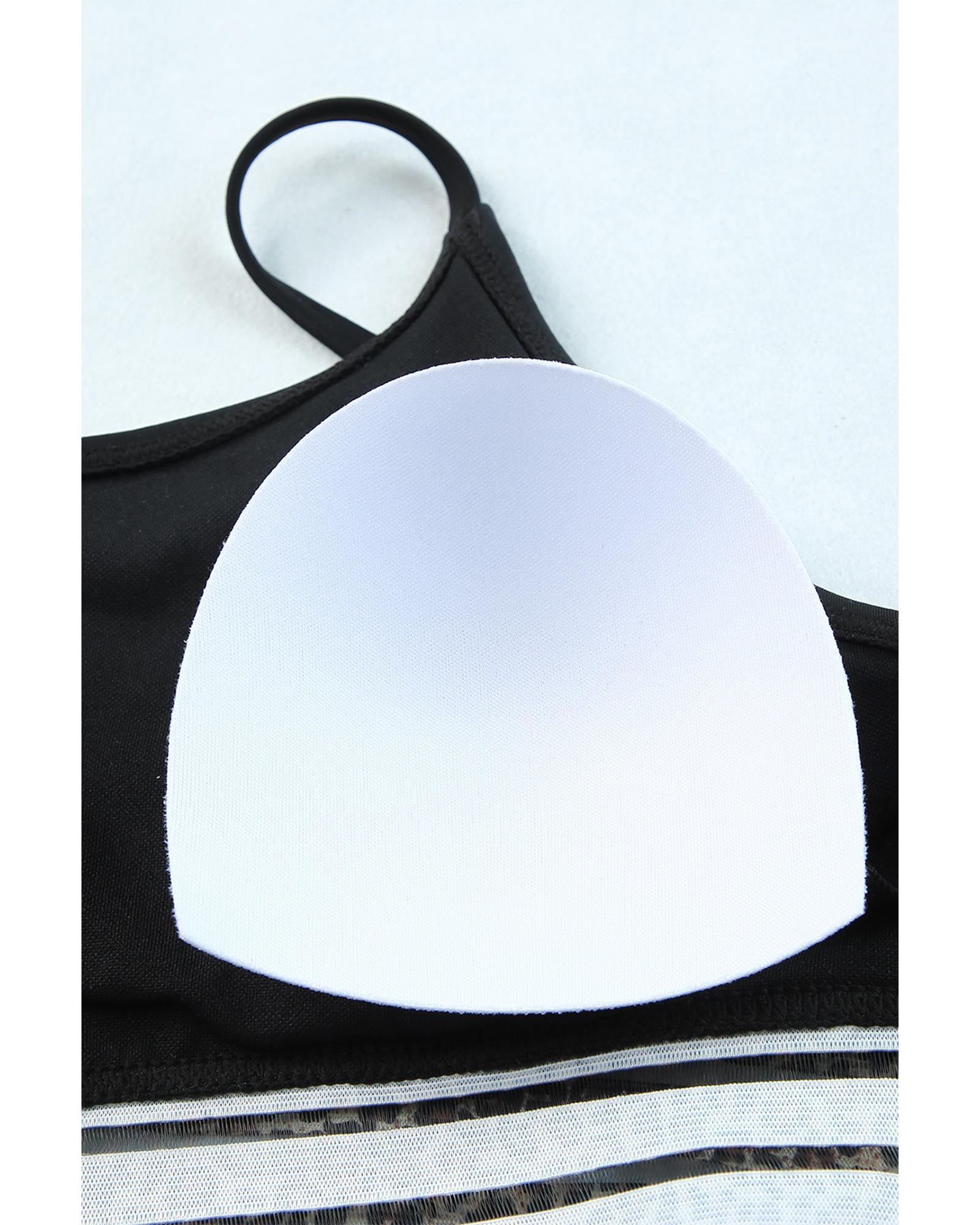 - piece bikini set characterized by leopard mesh trim