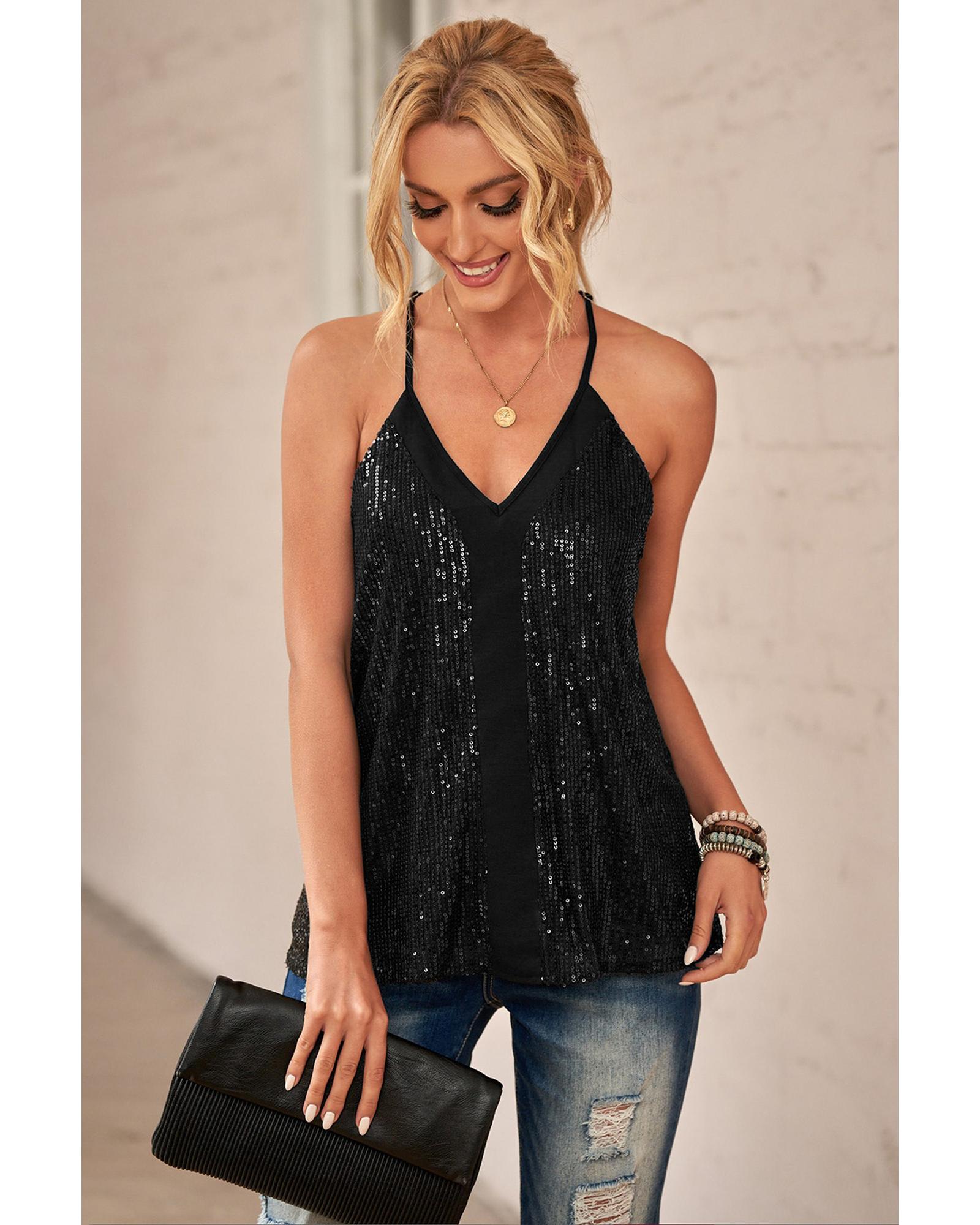 Azura Exchange Black Sequin Racerback Tank – 2XL