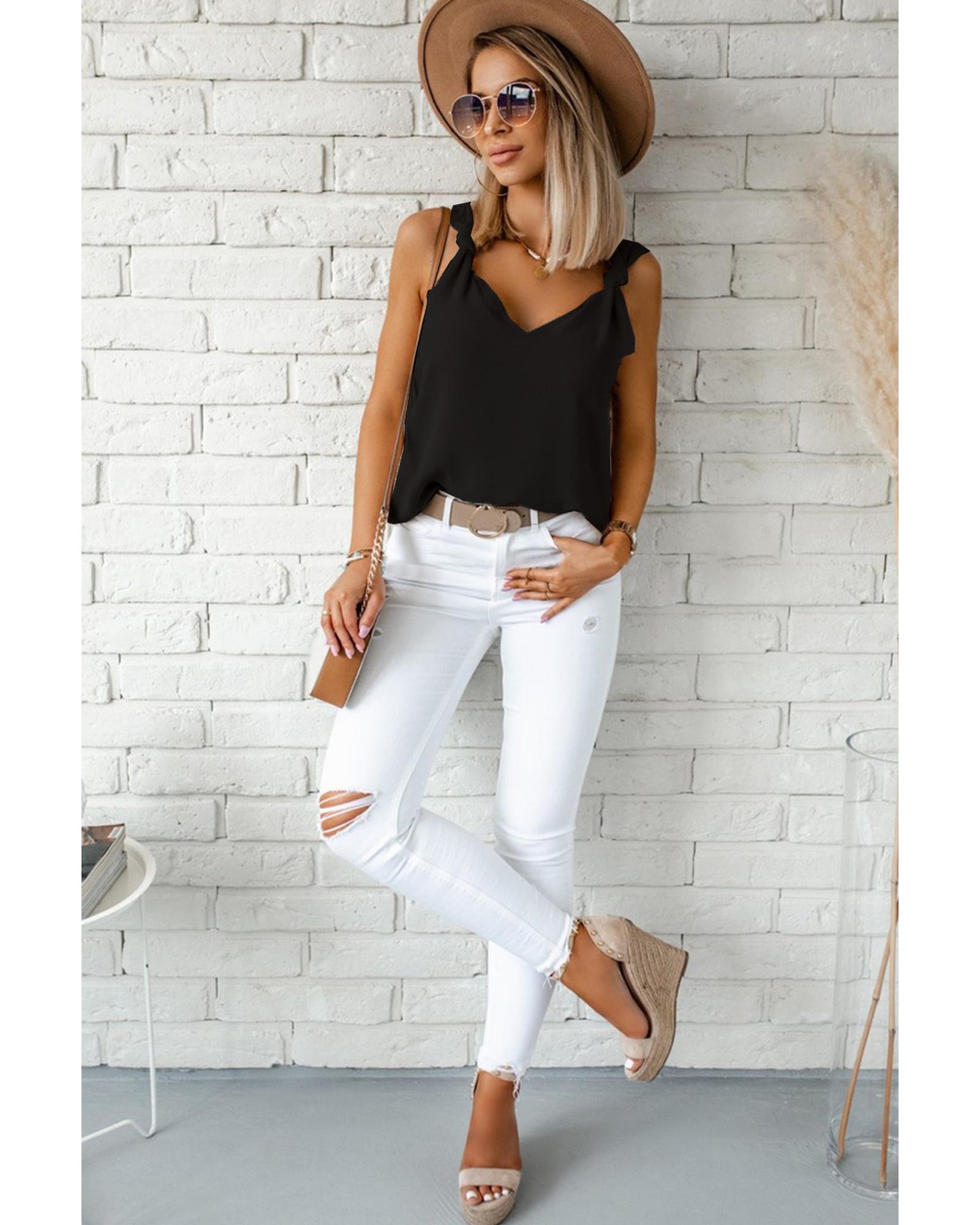 Azura Exchange Black V Neck Knotted Shoulder Vest – S