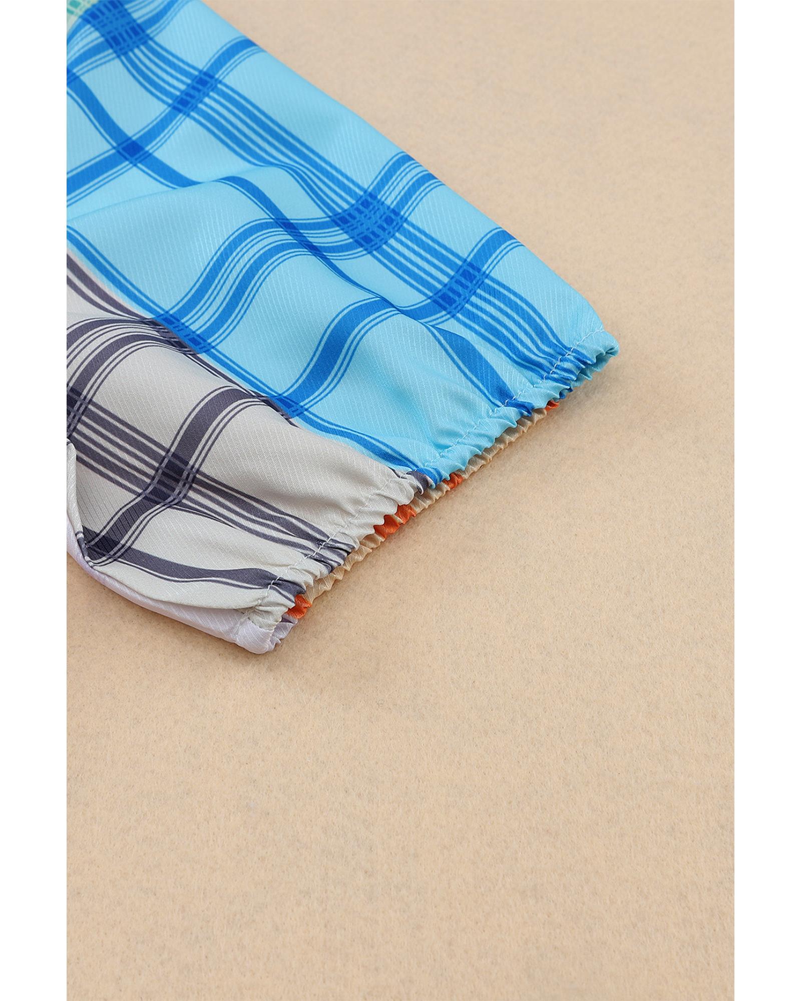 Azura Exchange Bold Plaid Color Block Puff Sleeve Peplum Top – M