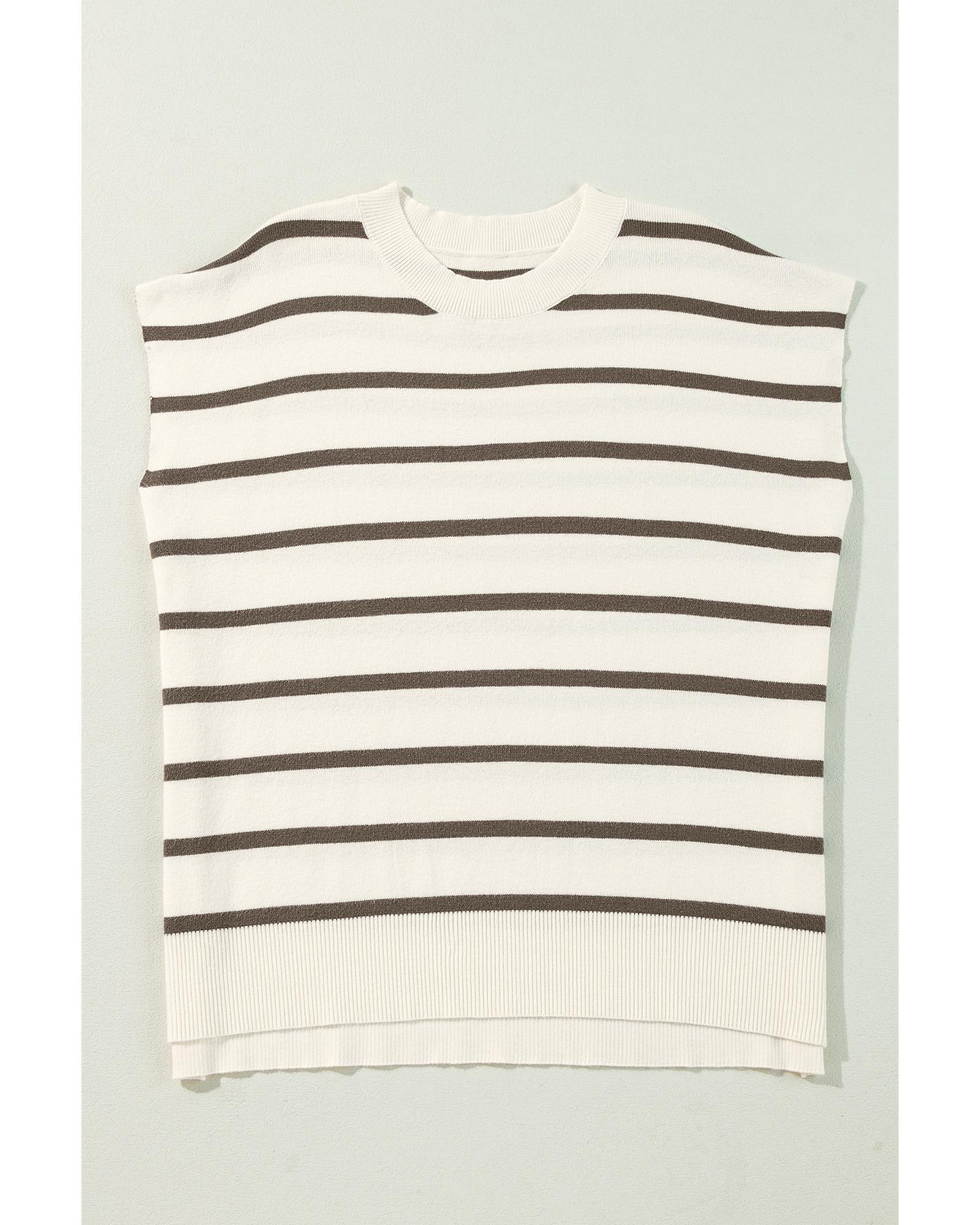 Azura Exchange Brown Stripe Side Slits Crewneck Short Sleeve Sweater Tee – L