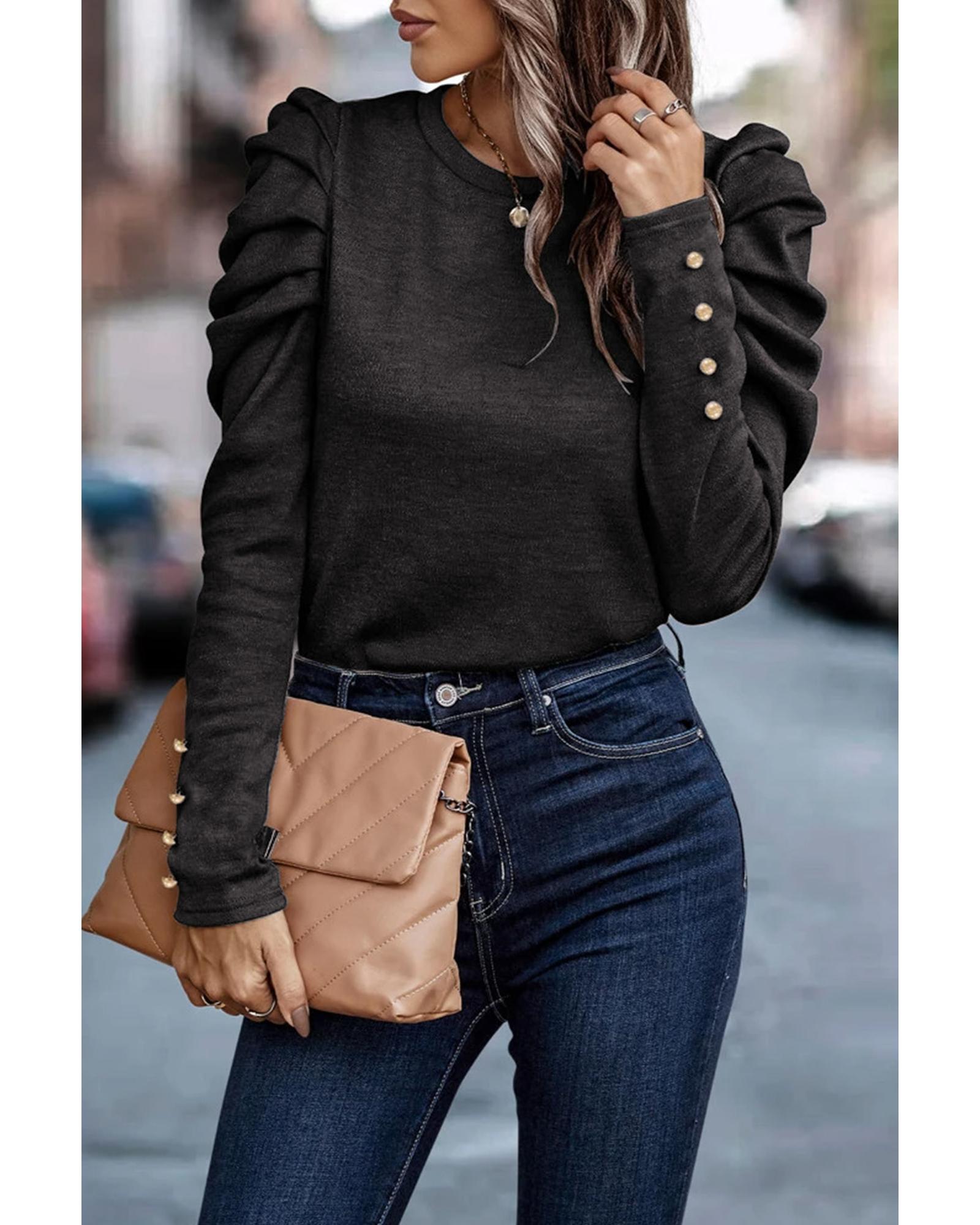 Azura Exchange Buttoned Puff Long Sleeve Sheath Top – M