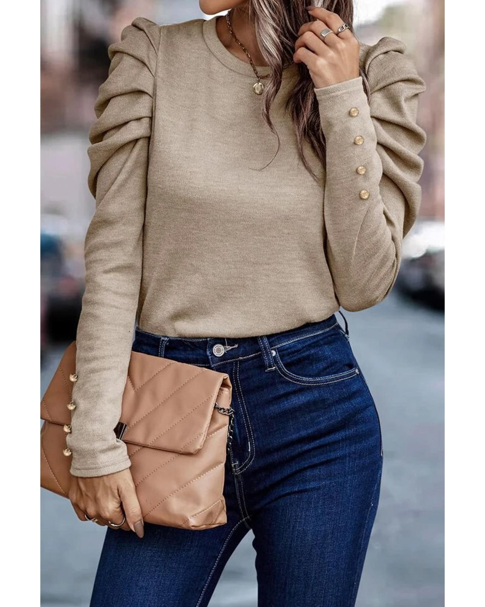 Azura Exchange Buttoned Puff Long Sleeve Sheath Top – XL
