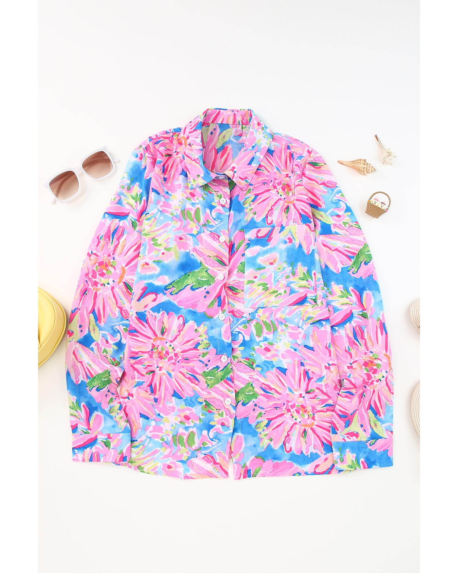 Azura Exchange Buttoned Sheath Long Sleeve Shirt with Abstract Floral Print – S