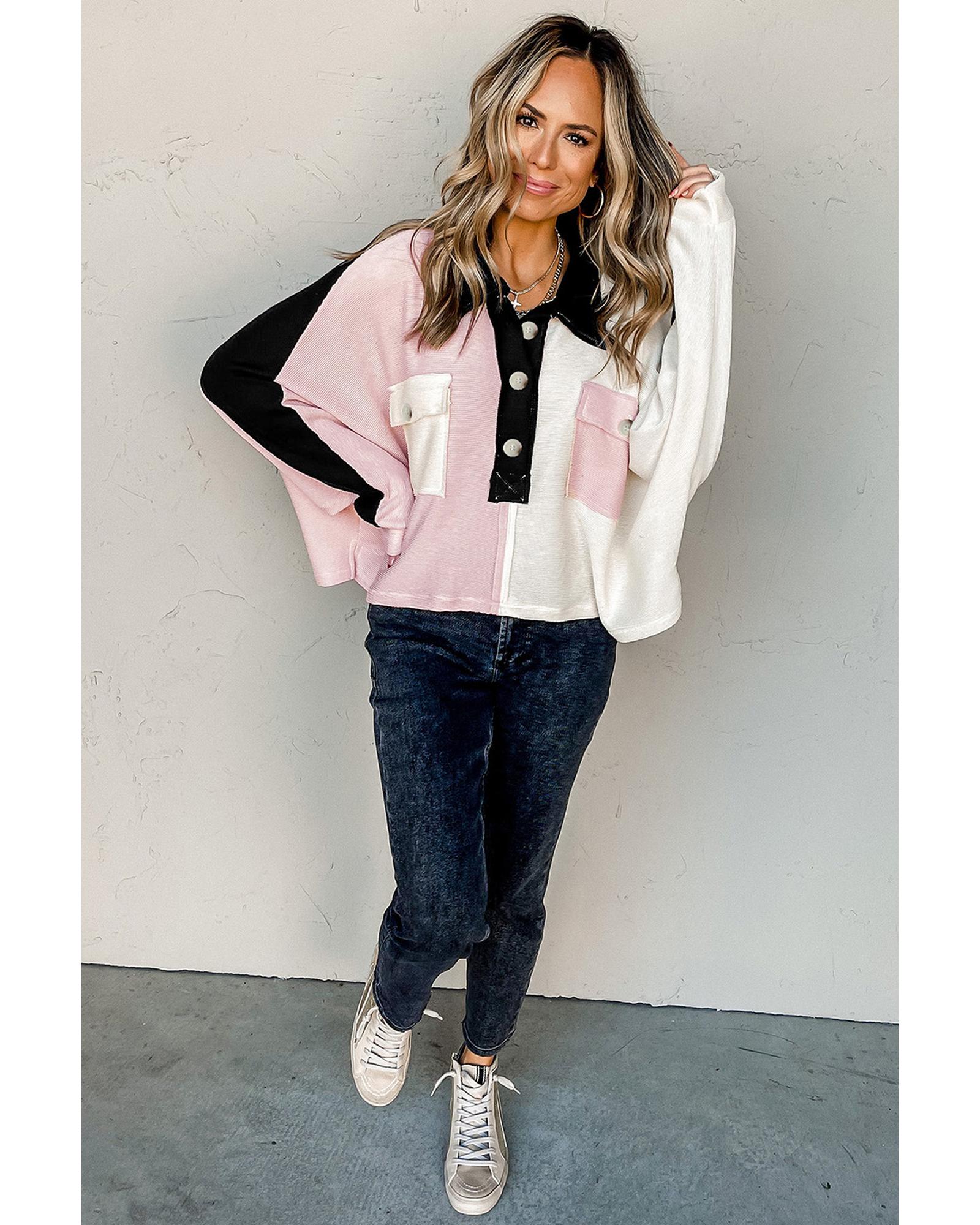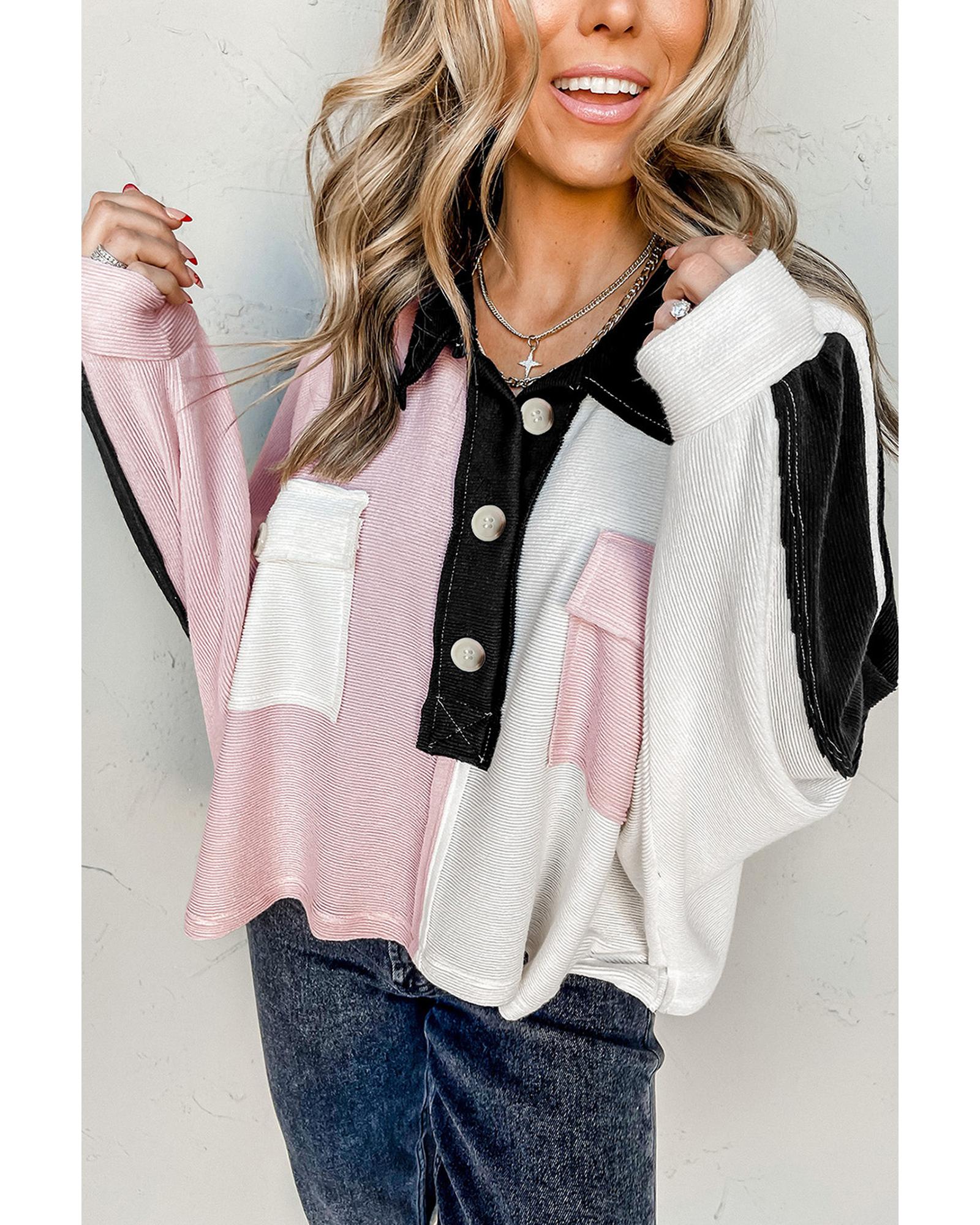 Azura Exchange Colorblock Flap Pockets Henley Collared Top – XL