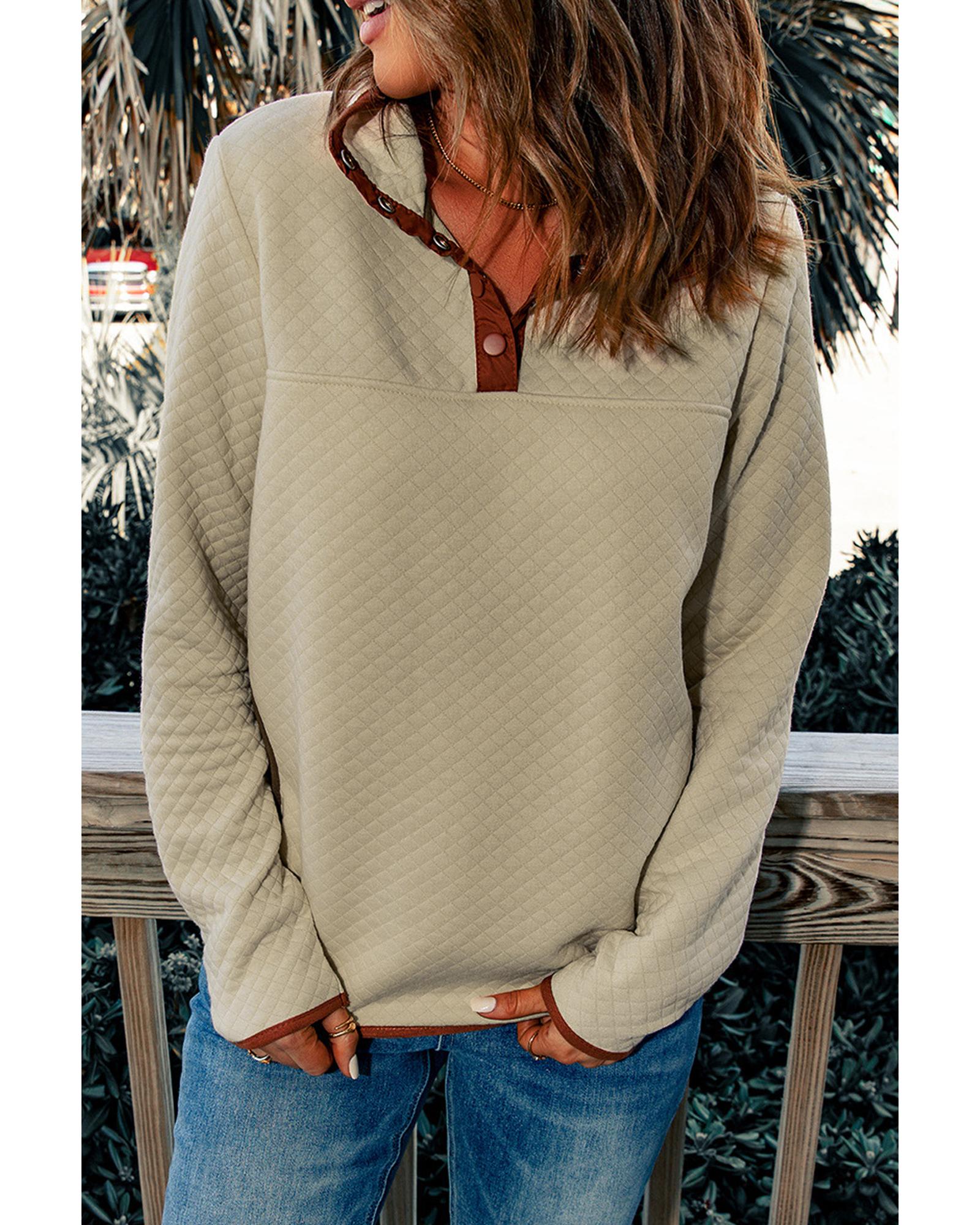 Azura Exchange Contrast Binding Snap Button Geometric Pullover Sweatshirt - L