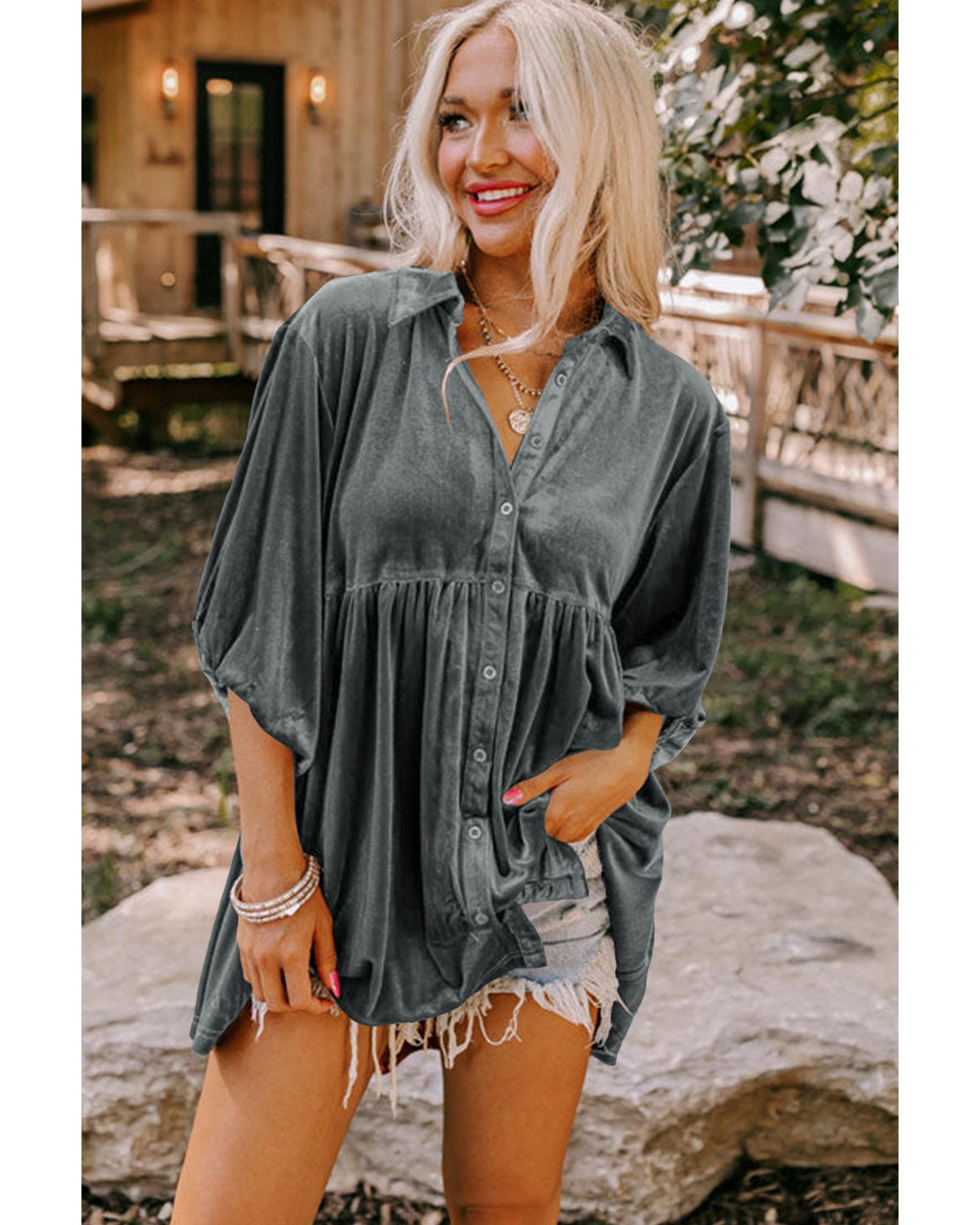 Azura Exchange Dark Grey 3/4 Sleeve Tunic Babydoll Velvet Shirt - S