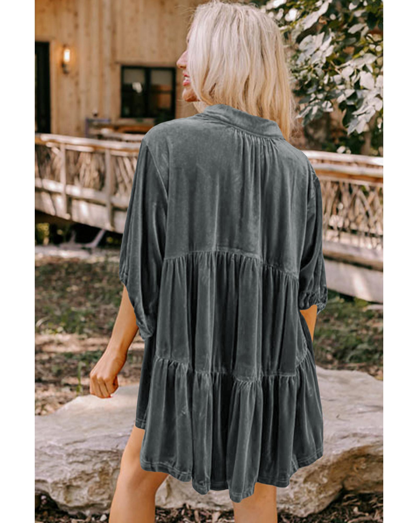 Azura Exchange Dark Grey 3/4 Sleeve Tunic Babydoll Velvet Shirt - XL
