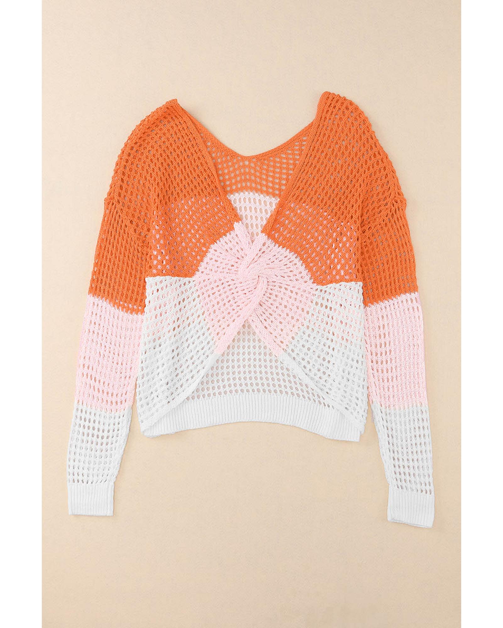 Azura Exchange Eyelet Knit Top with Twisted Back and Color Block Design – L