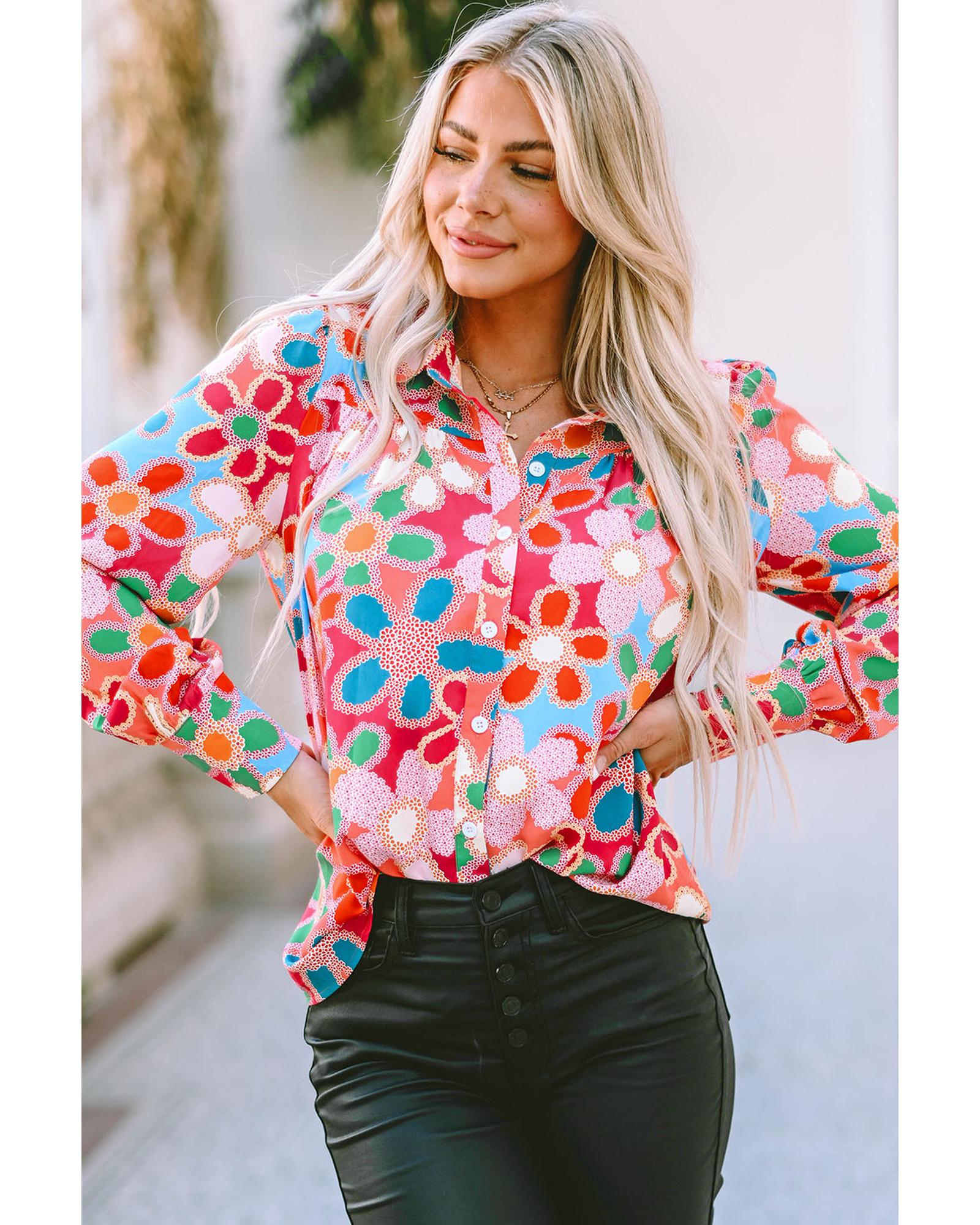 Azura Exchange Floral Print Bubble Sleeve Shirt – S