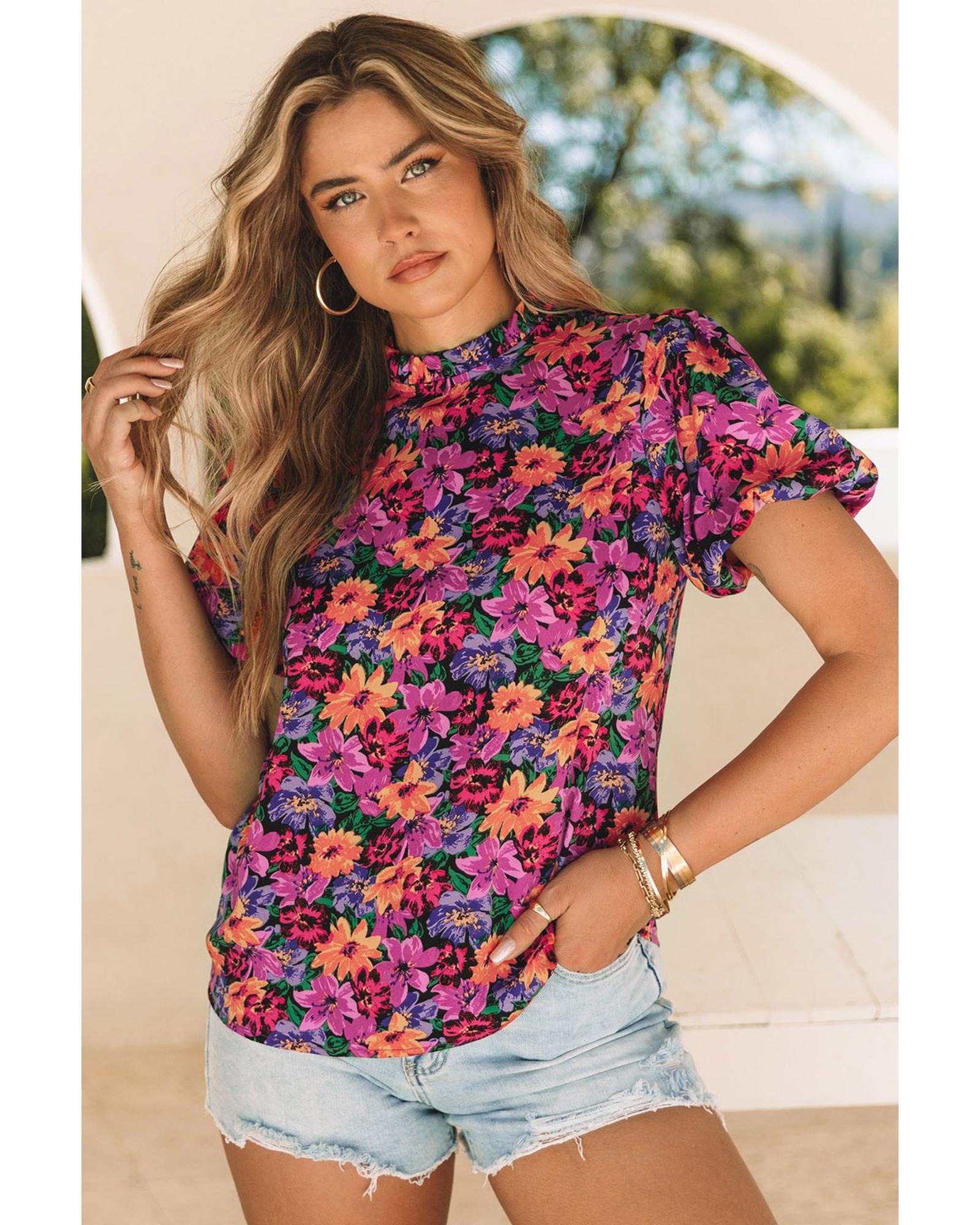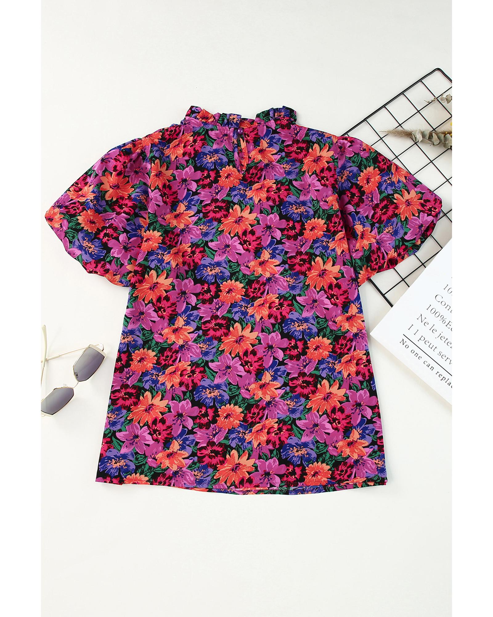 Azura Exchange Floral Print Puff Sleeve Blouse – S