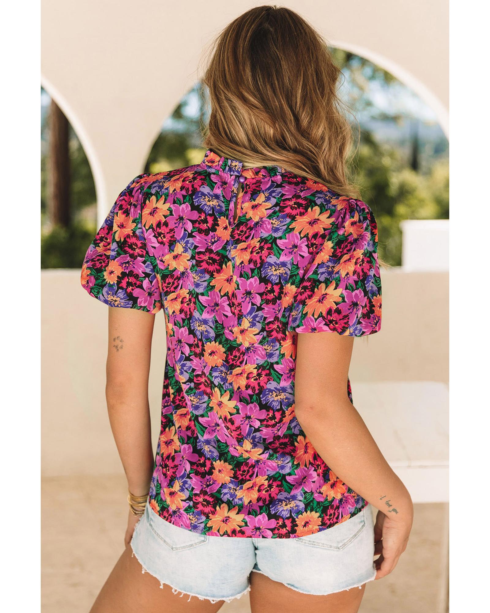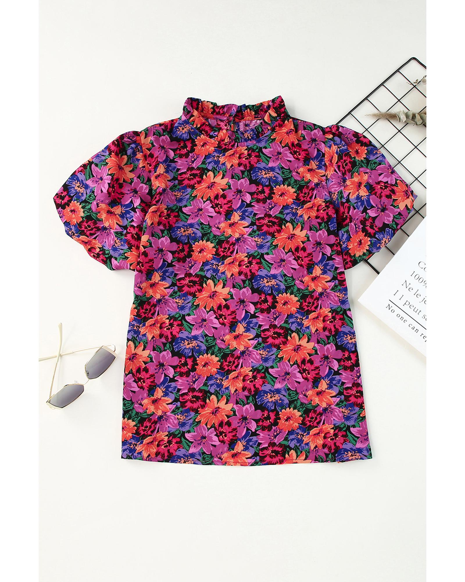 Azura Exchange Floral Print Puff Sleeve Blouse – XL