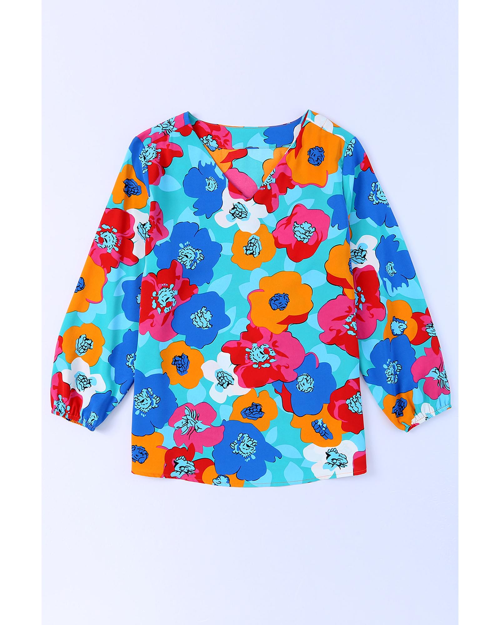 Azura Exchange Floral Print V Neck Blouse - S