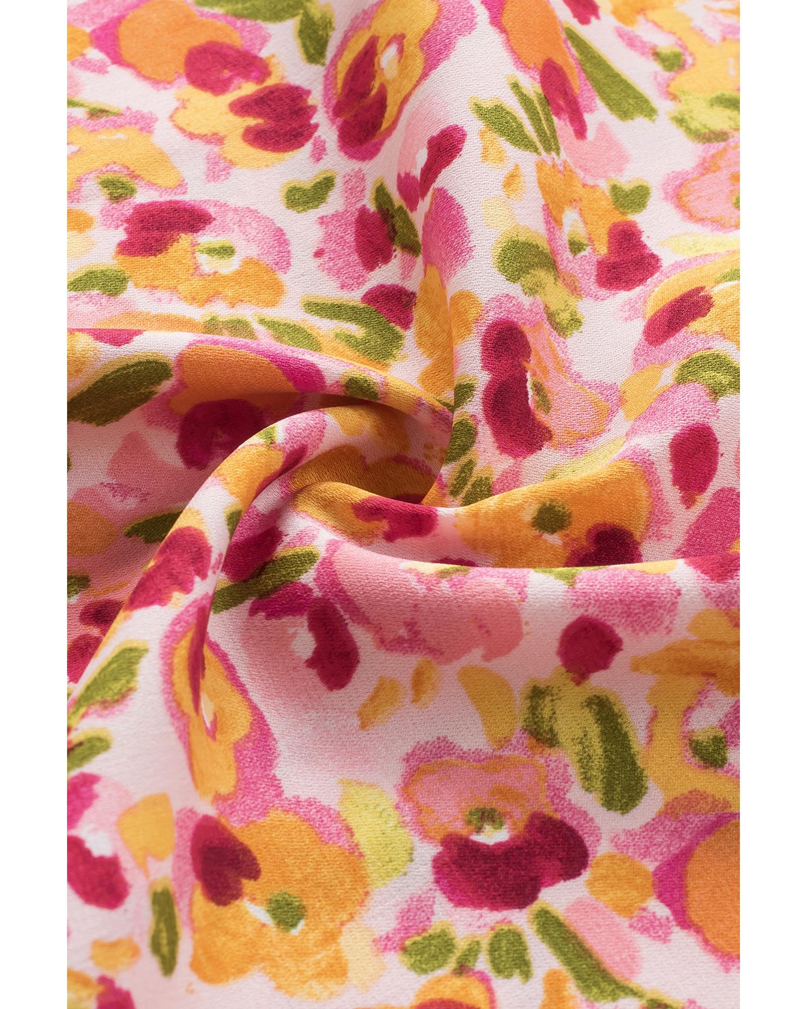 Azura Exchange V Neck 3/4 Sleeve Floral Print Blouse - S