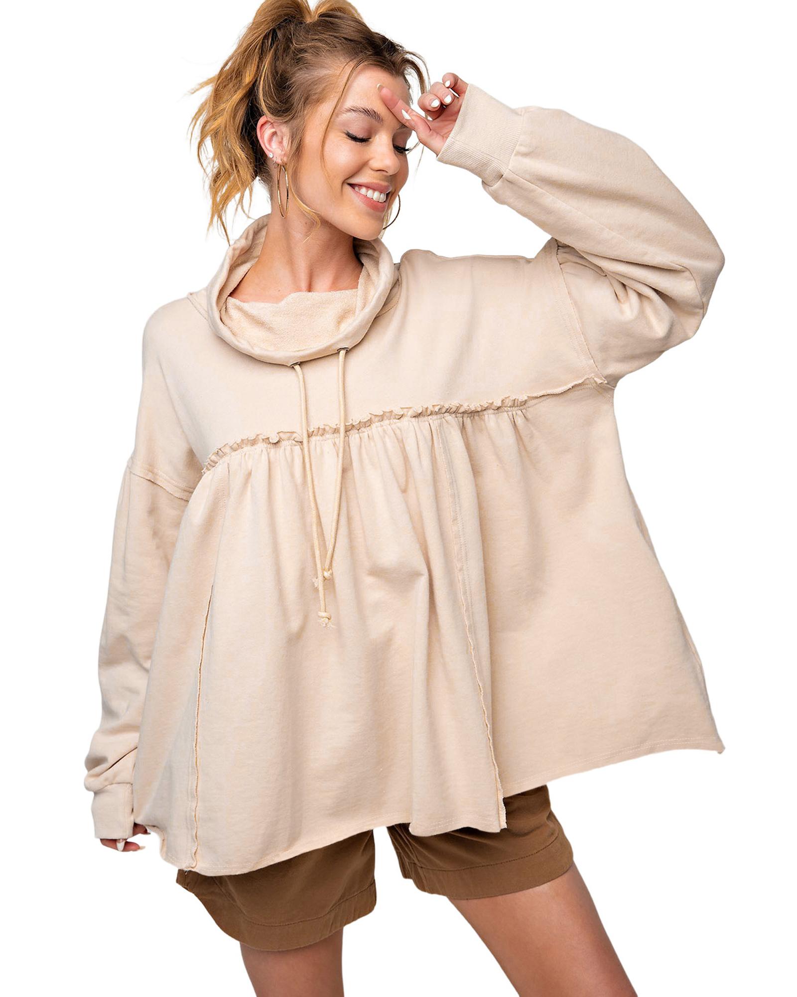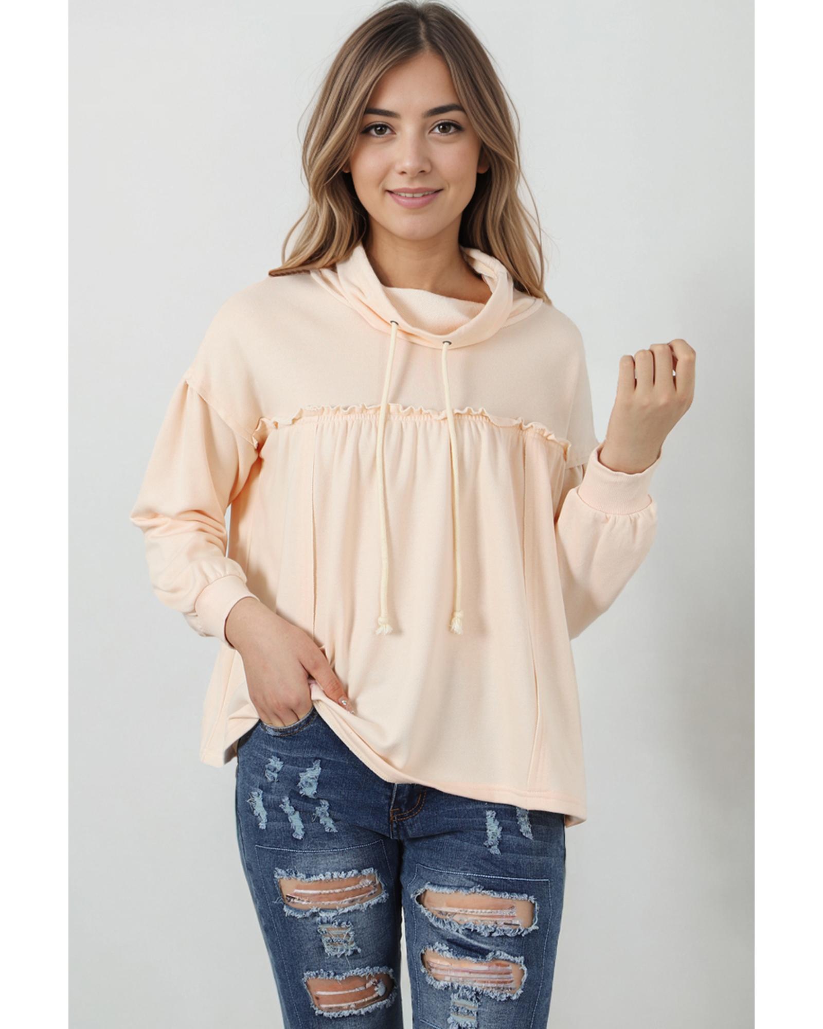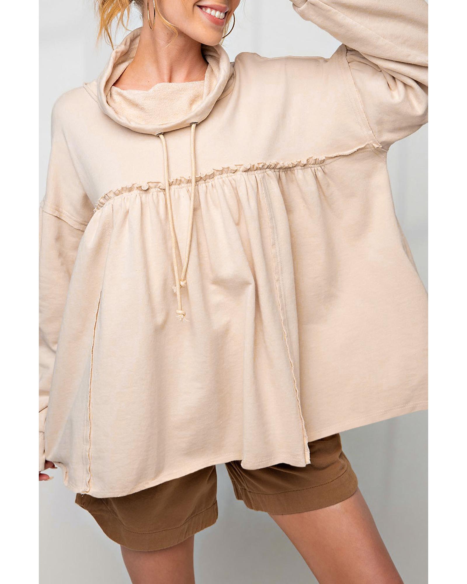 - Beige frill exposed seam cowl neck oversized sweatshirt