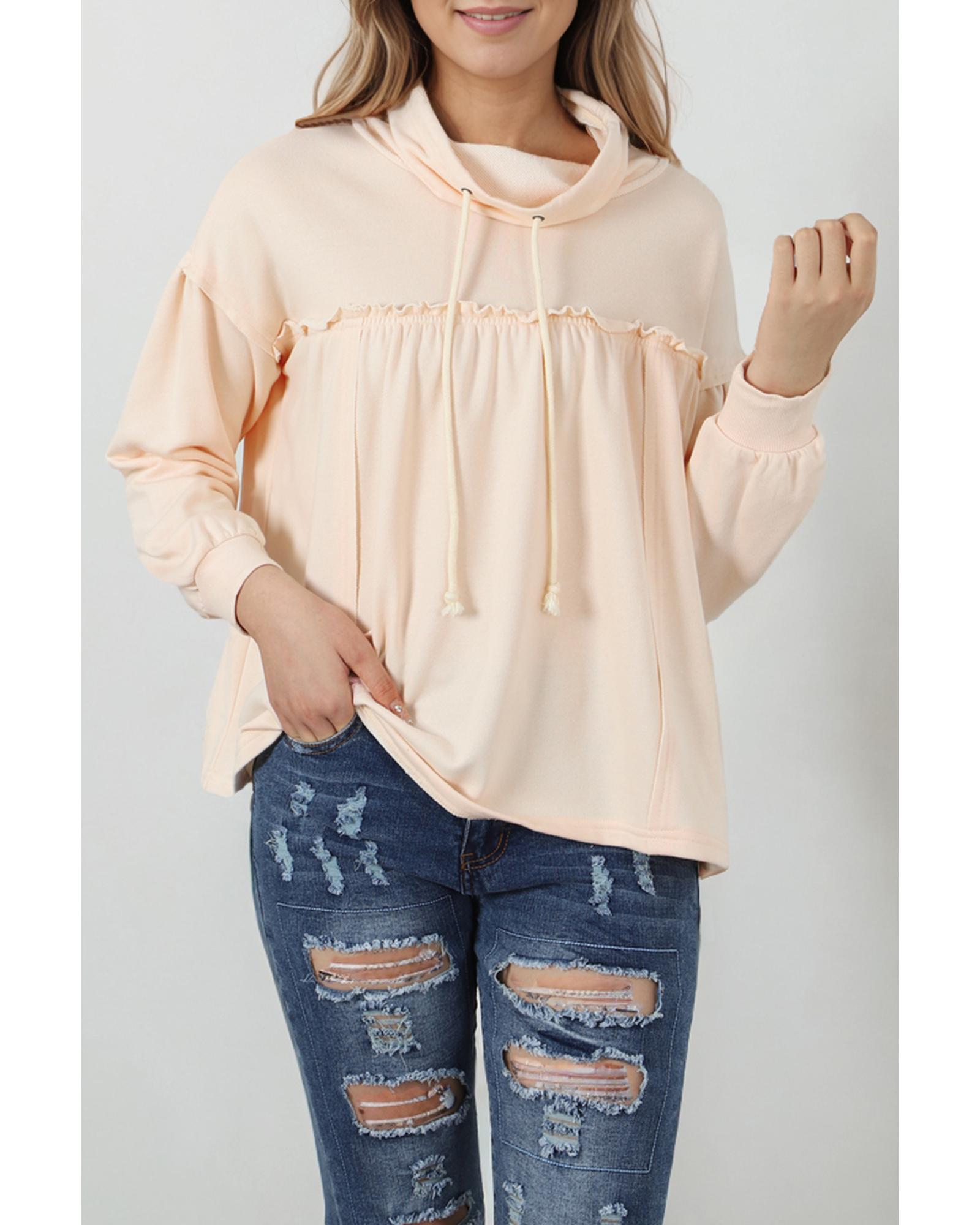 - Beige frill exposed seam cowl neck oversized sweatshirt