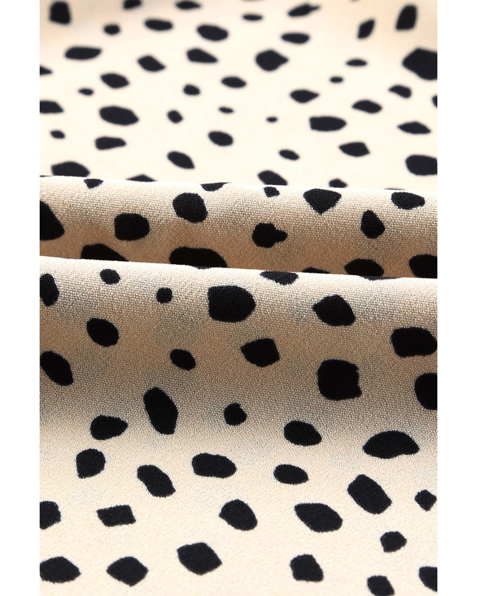 - Khaki Frilled Neck 3/4 Sleeves Cheetah Blouse